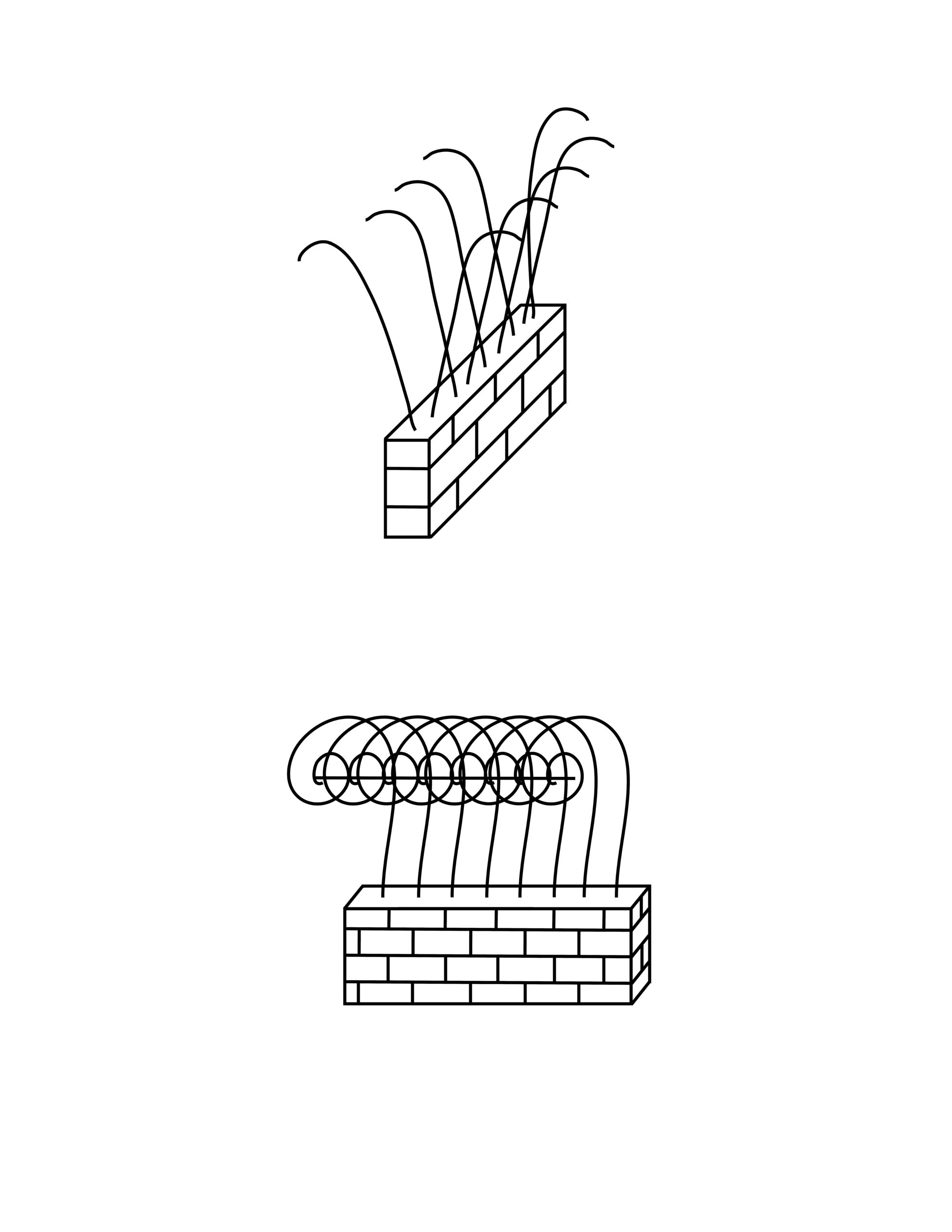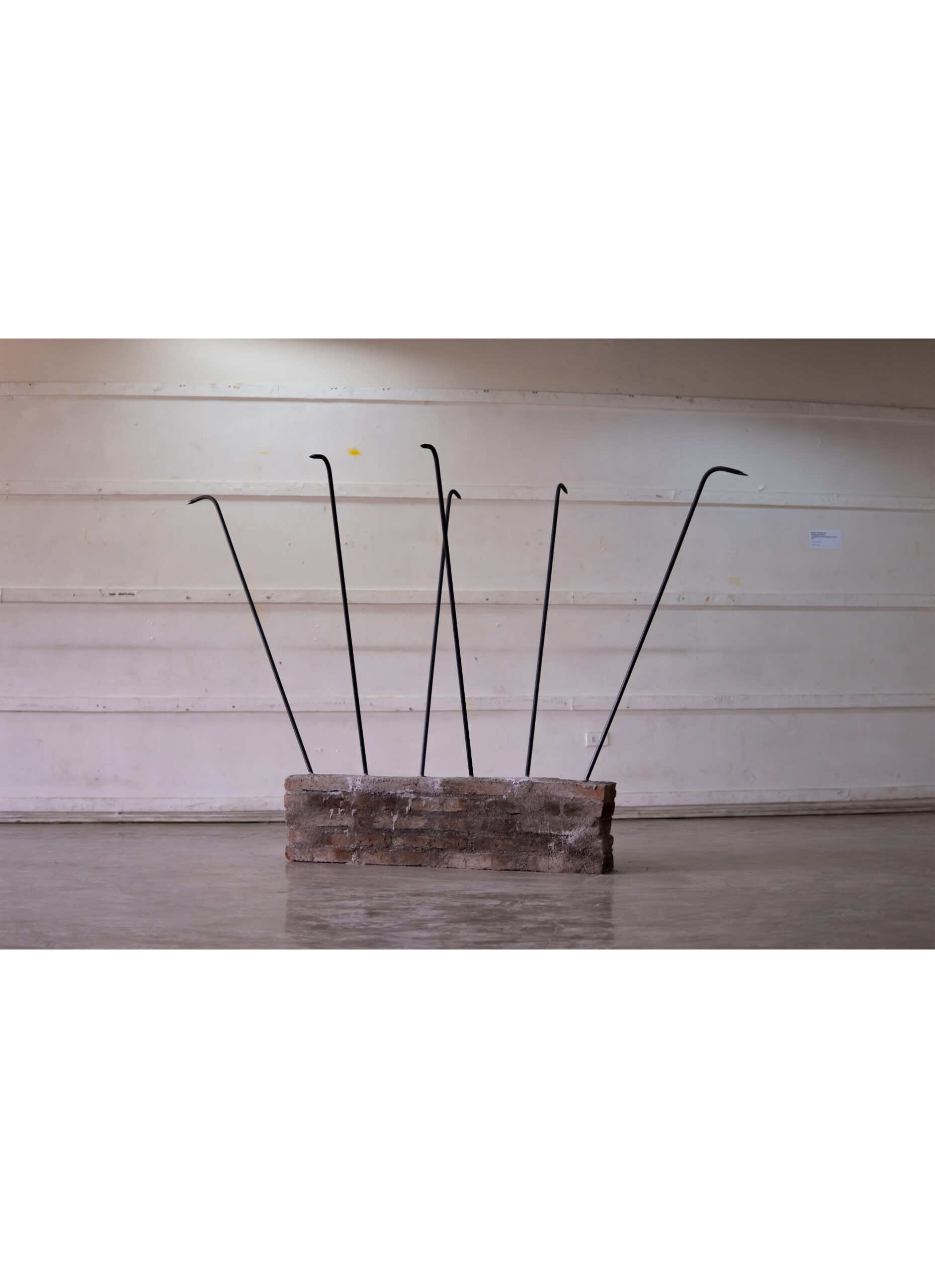 El cuerpo de obra responde al paso del tiempo de estas limitaciones y su lenguaje. Tal es el caso de la reja maciza con sus puntas encorvadas que pose un mensaje directo con el visitante; un aviso de advertencia y amenaza que nos recuerda los límites territoriales. Esta obra es un recordatorio de que las limitaciones aún siguen ahí, y que pese a todo intento de maquillar y ornamentar el enrejado, éste sigue dividiendo y encerrando, siendo parte estructural del urbanismo y las viviendas.