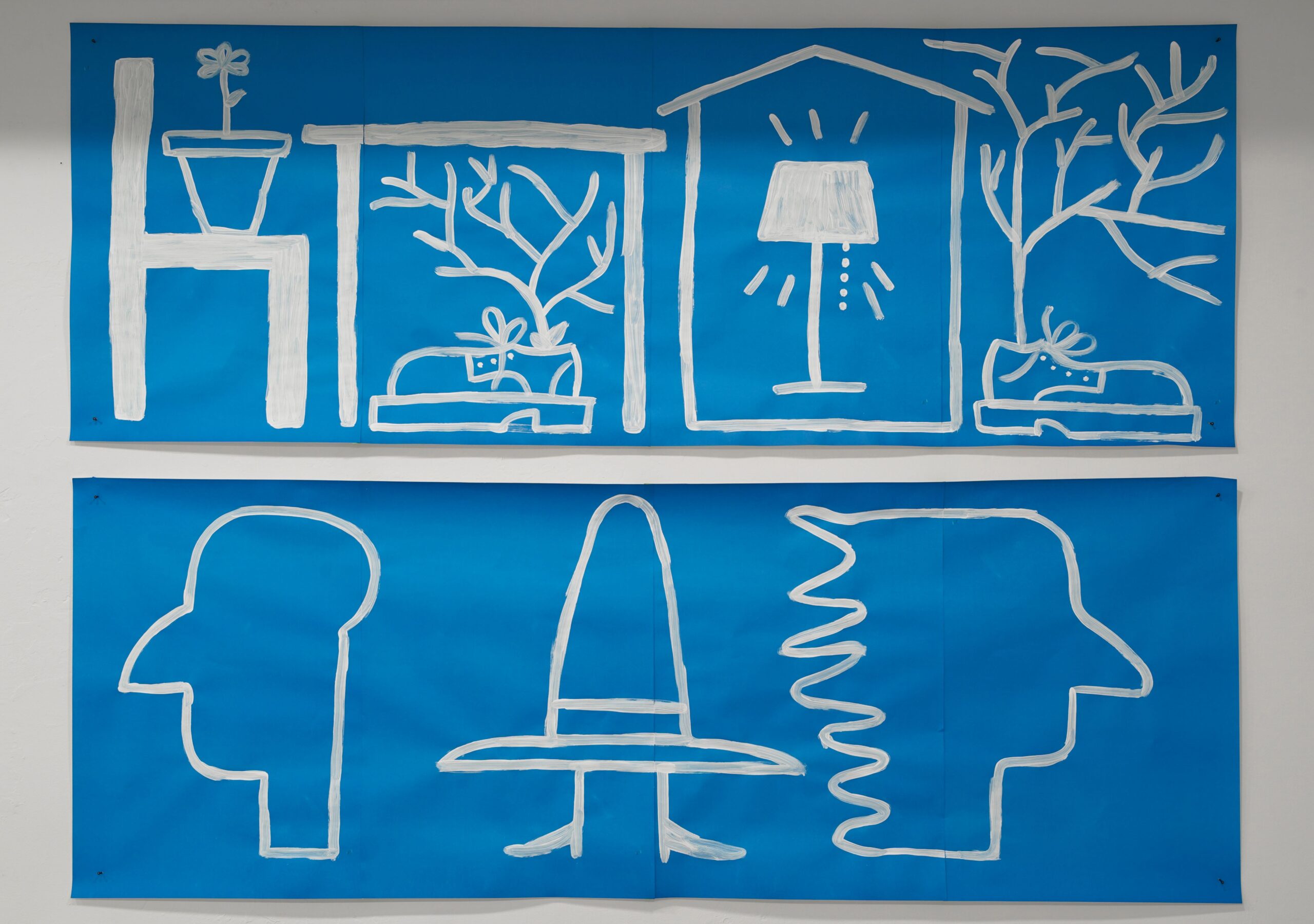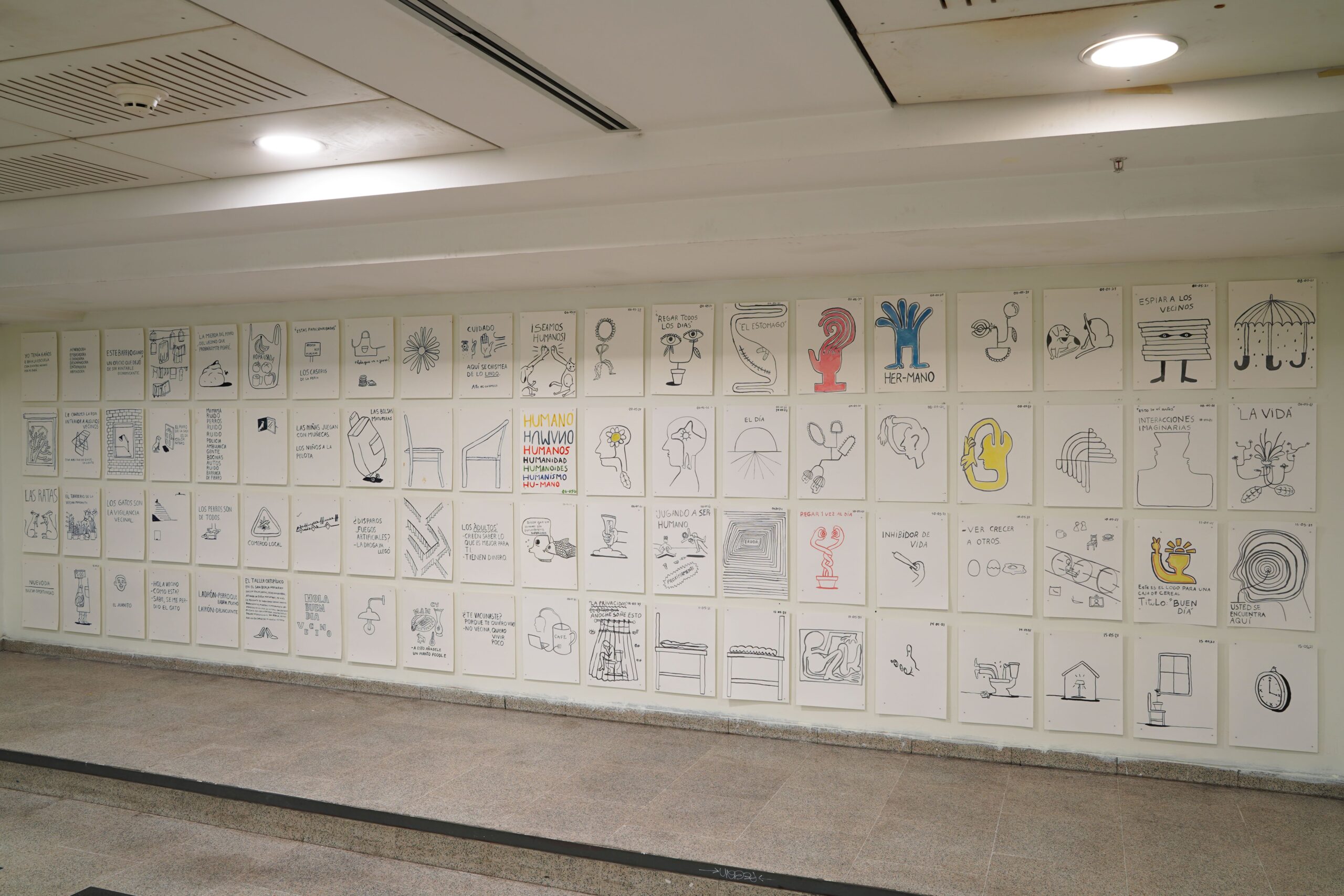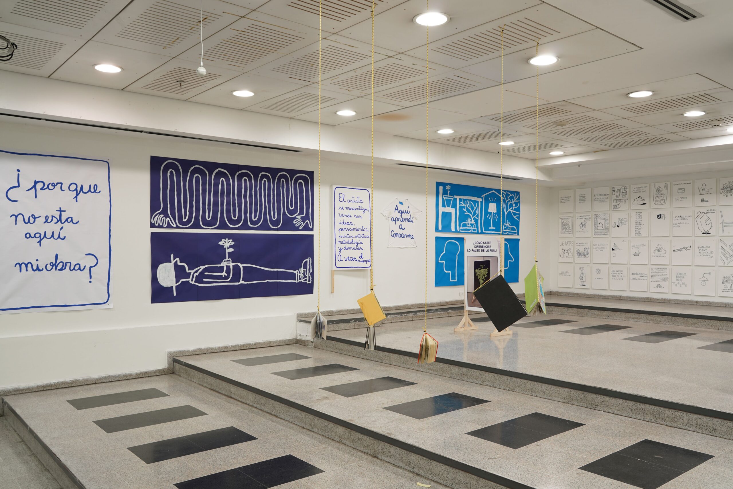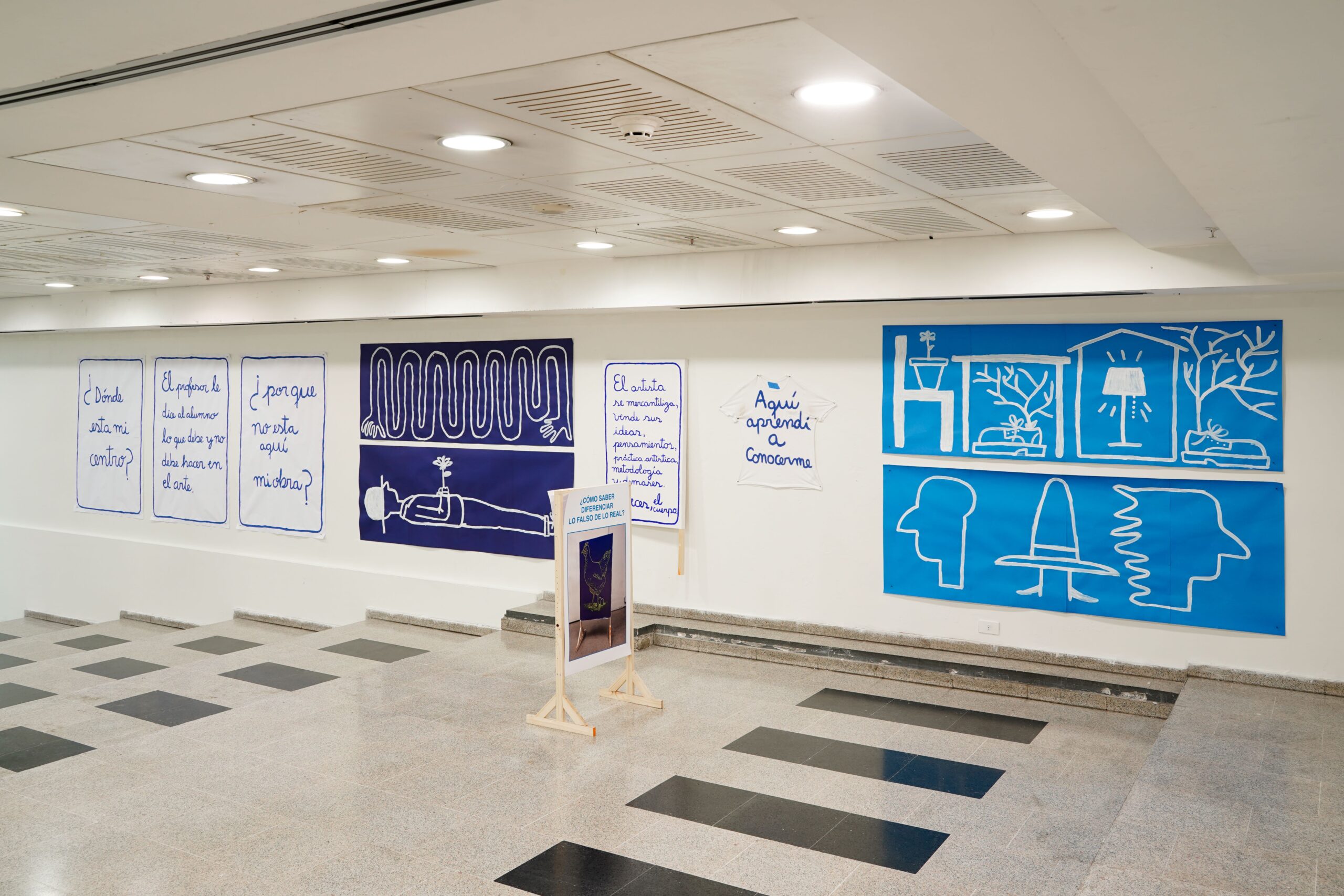 Impresión digital, intervención en el transporte público, dibujo/escritura azul sobre papel bond, polera intervenida con tempra azul. Medidas variables.