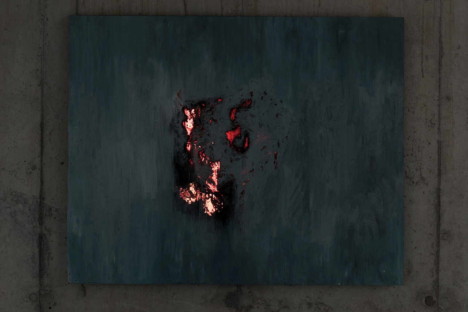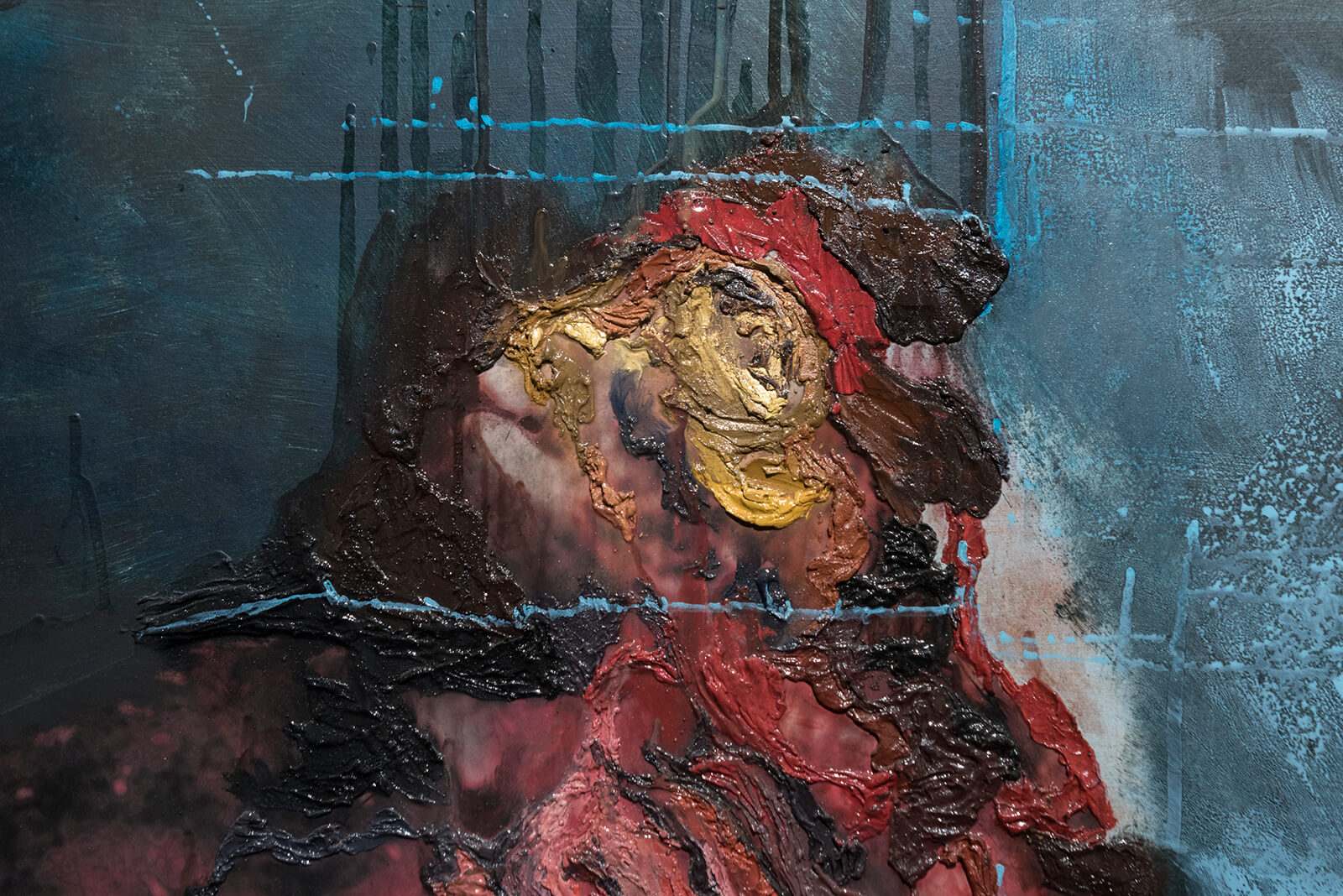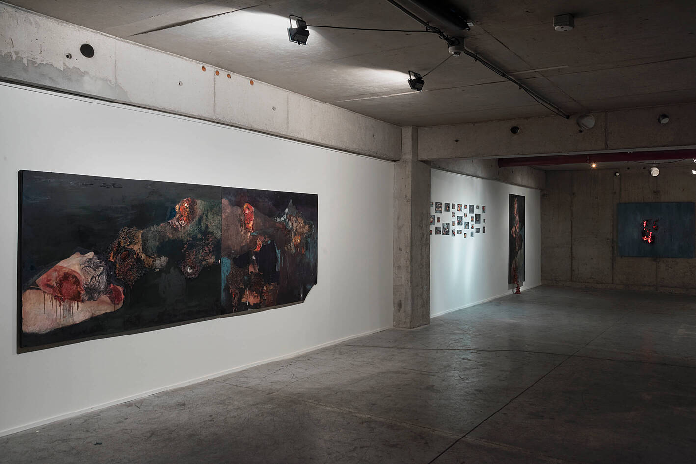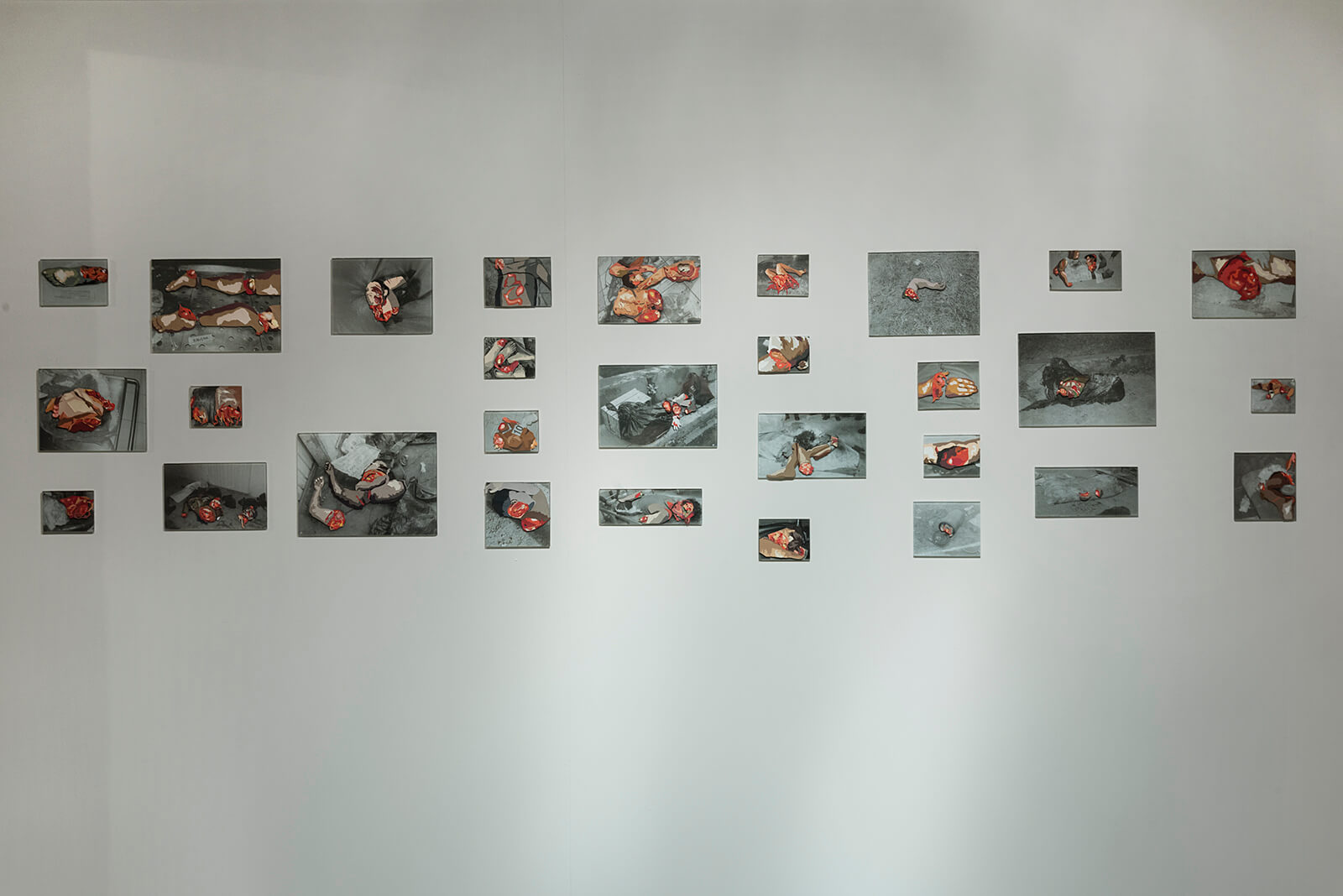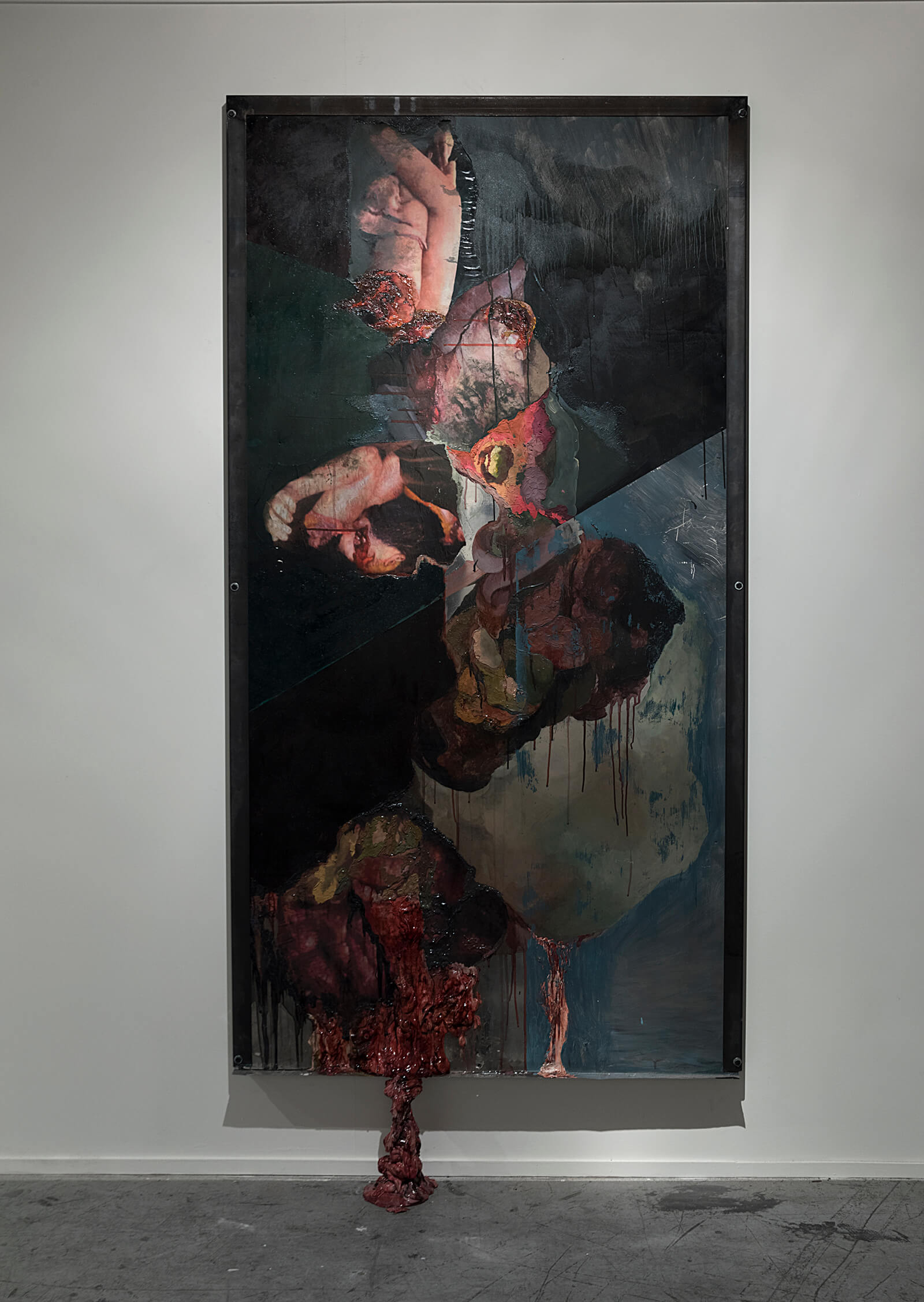 Fernanda Ponce de León, Criminalística de la imagen, 2017 Pintura óleo, pintura acrílica, barniz, acrílico, leds. Dimensiones variables.