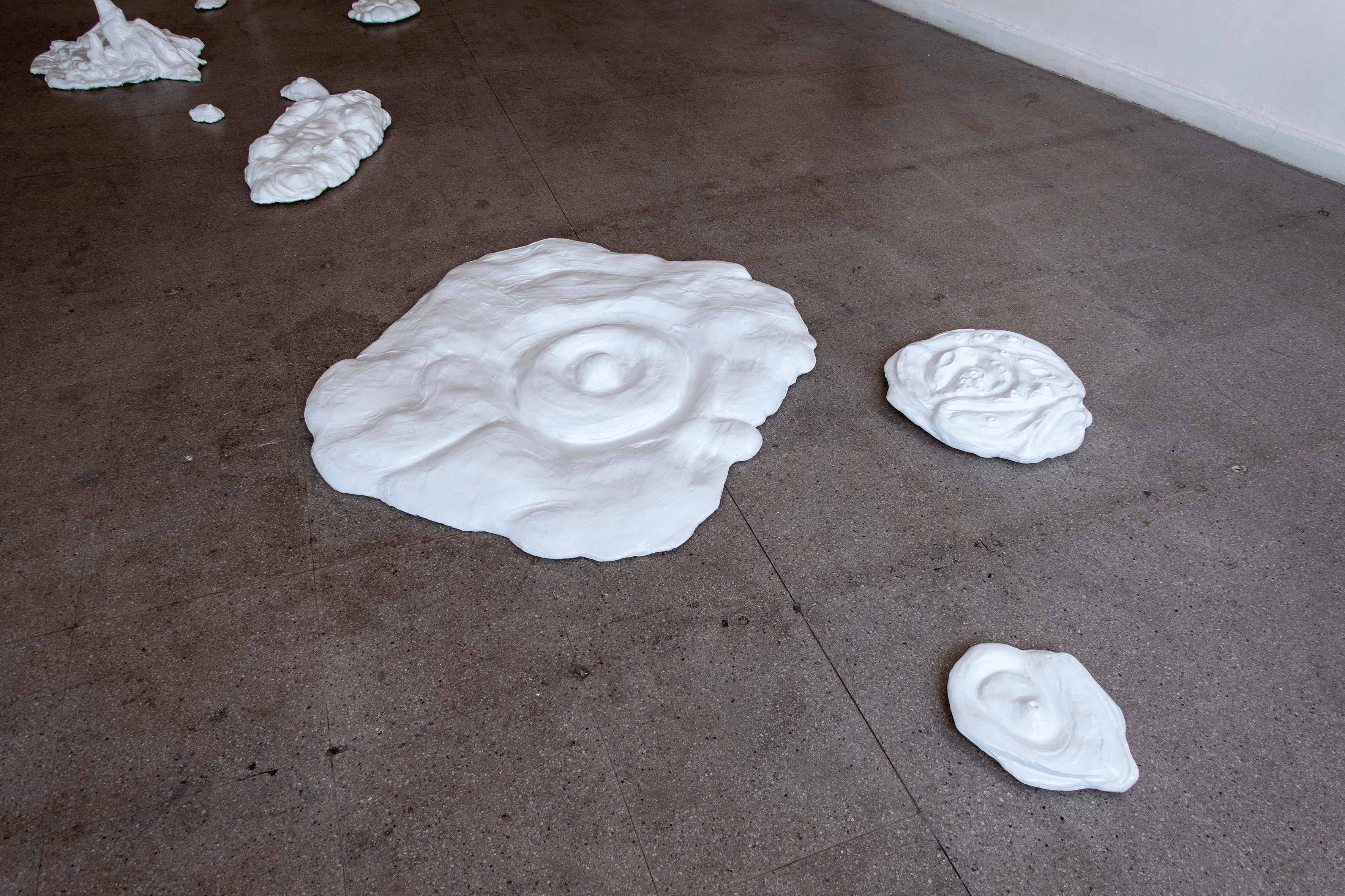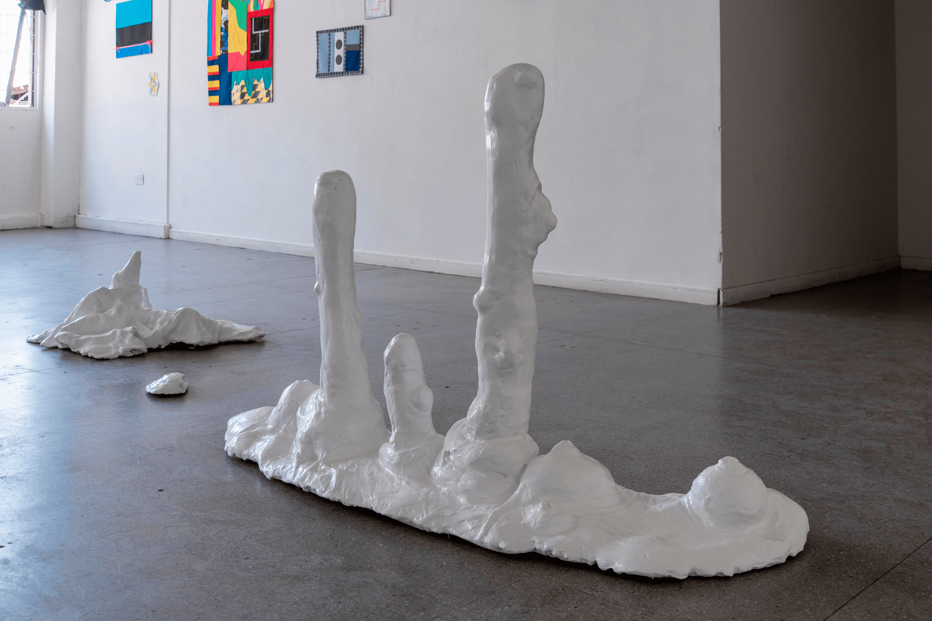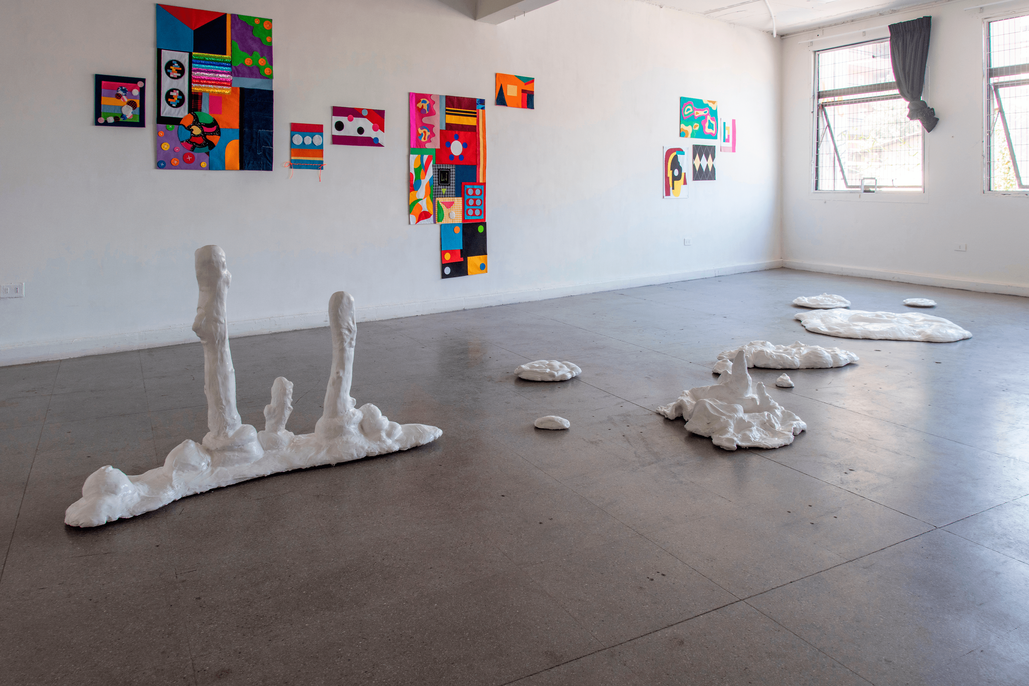Quisiera pensar en mi trabajo como un punto intermedio que une ambas definiciones y, que estas puedan transmitirse y materializarse por medio de la escultura. Pienso que este paisaje y cada parte que lo conforma denota el concepto al cual me he arraigado: abstracción y alteridad. Donde estas figuras orgánicas y poco reconocibles muestran la primera parte de lo que es una quimera, aquel cuerpo híbrido y extraño que nos hace cuestionarnos su manera de ser. Y al mismo tiempo las posibilidades que su propia imagen brinda, que su extensión sobre el suelo, su color y su textura lleve al espectador hacia la otra parte de la quimera, aquella en la que la persona puede imaginar su procedencia, sopesar acerca de su visualidad y fantasear sobre lo que es, sobre de dónde viene y sobre qué está hecho.