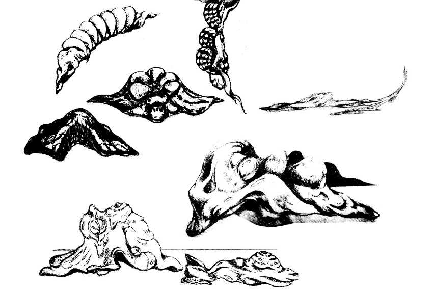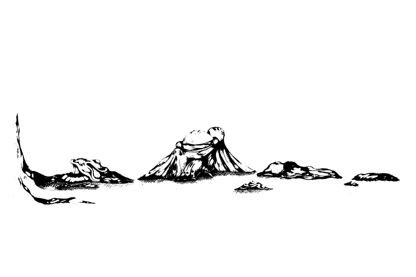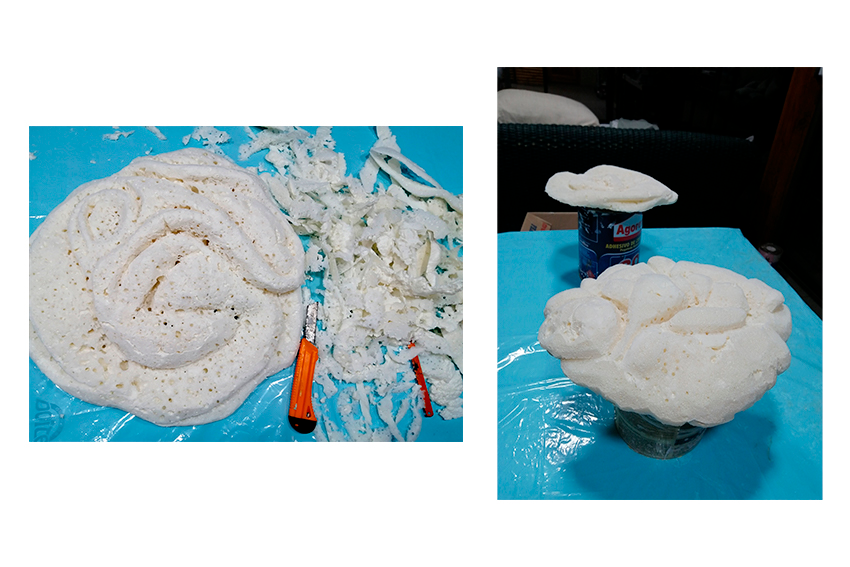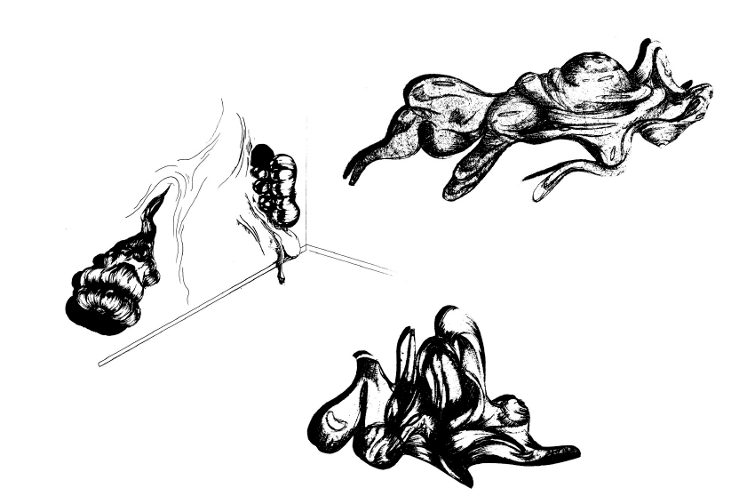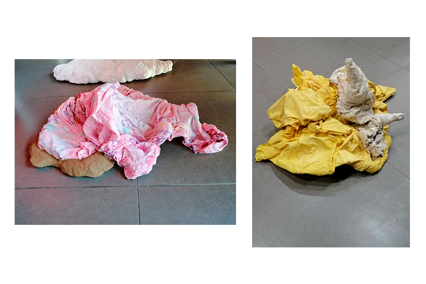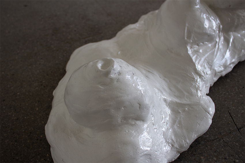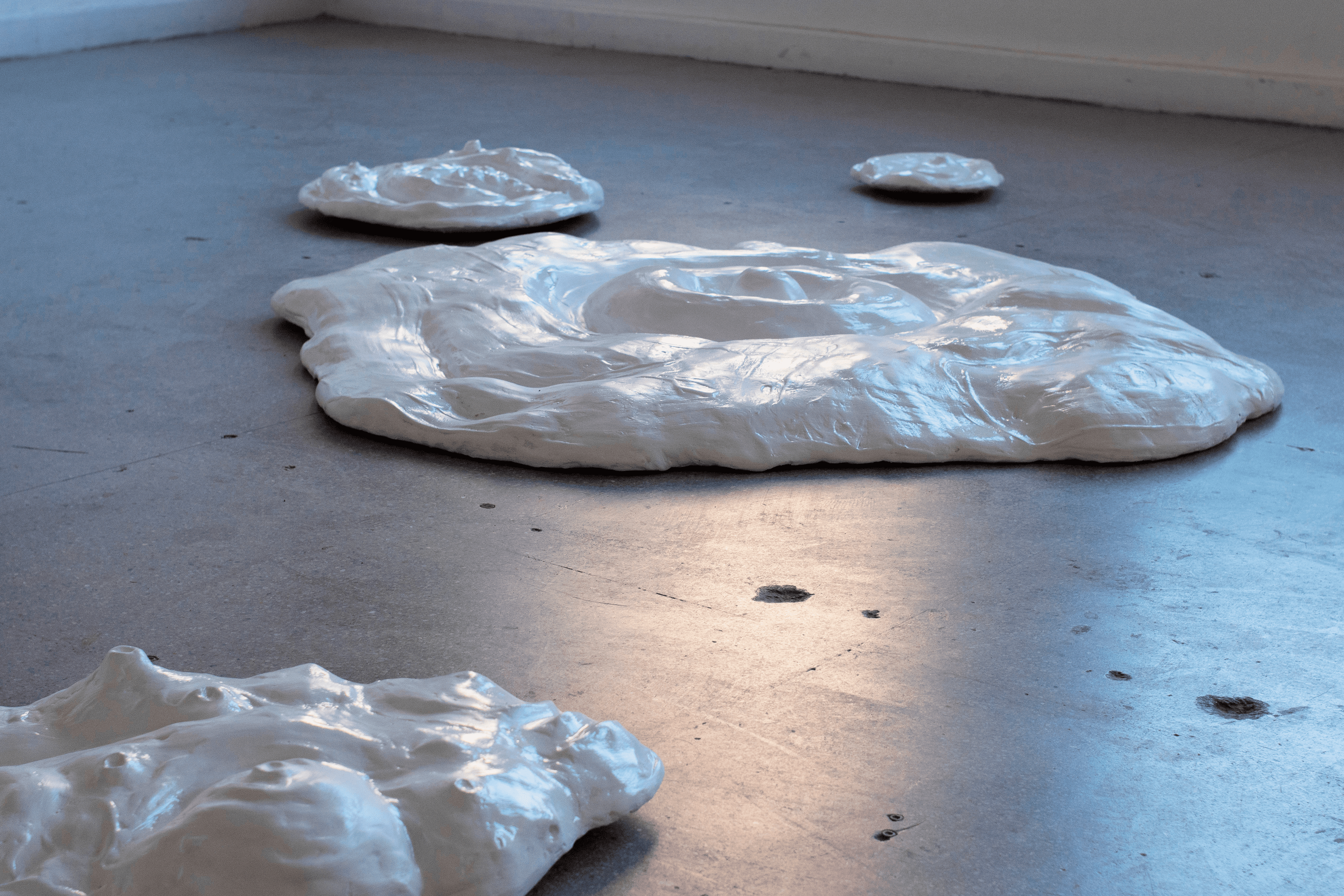 Quisiera pensar en mi trabajo como un punto intermedio que une ambas definiciones y, que estas puedan transmitirse y materializarse por medio de la escultura. Pienso que este paisaje y cada parte que lo conforma denota el concepto al cual me he arraigado: abstracción y alteridad. Donde estas figuras orgánicas y poco reconocibles muestran la primera parte de lo que es una quimera, aquel cuerpo híbrido y extraño que nos hace cuestionarnos su manera de ser. Y al mismo tiempo las posibilidades que su propia imagen brinda, que su extensión sobre el suelo, su color y su textura lleve al espectador hacia la otra parte de la quimera, aquella en la que la persona puede imaginar su procedencia, sopesar acerca de su visualidad y fantasear sobre lo que es, sobre de dónde viene y sobre qué está hecho.