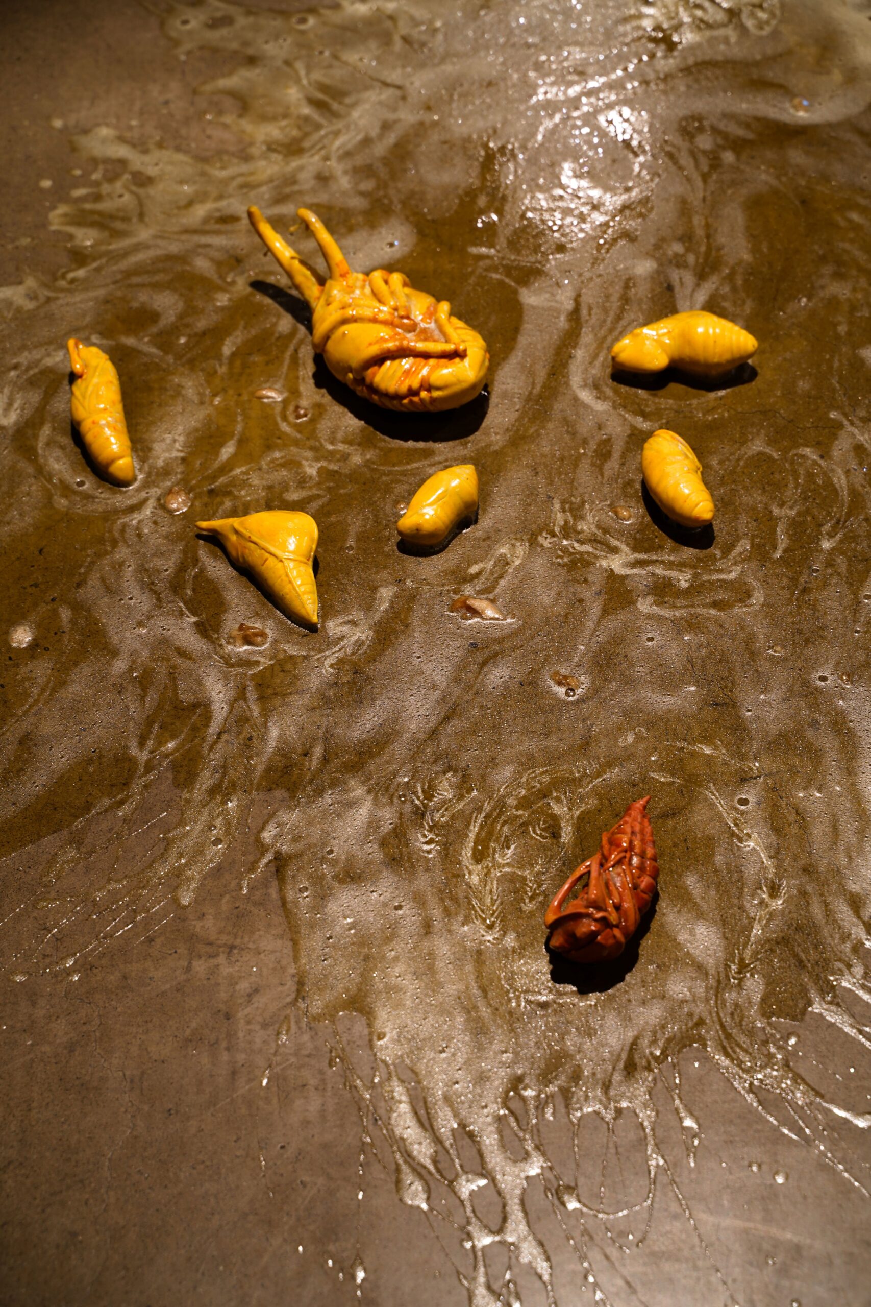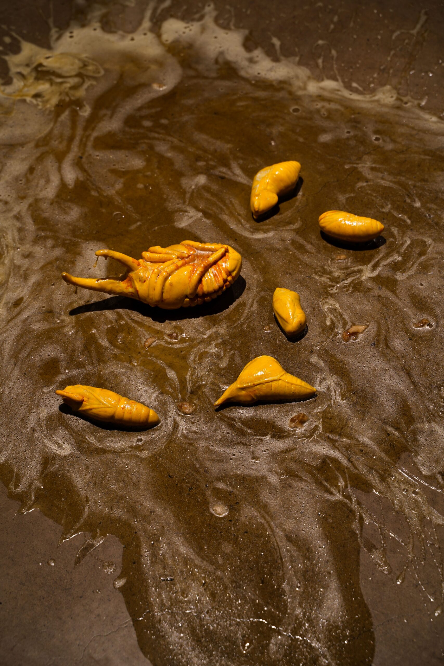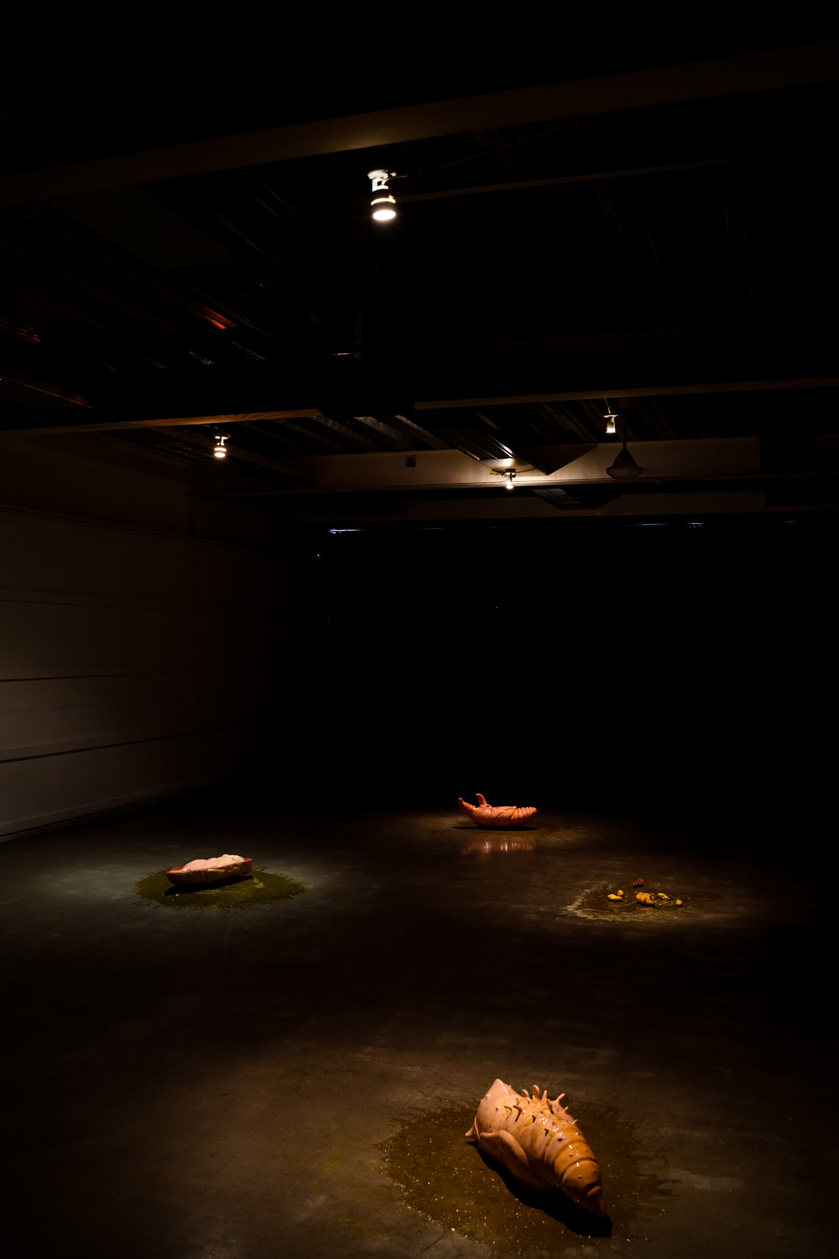 Papel Maché, cola fría, plastilina, resina, gelatina. Medidas variables.
