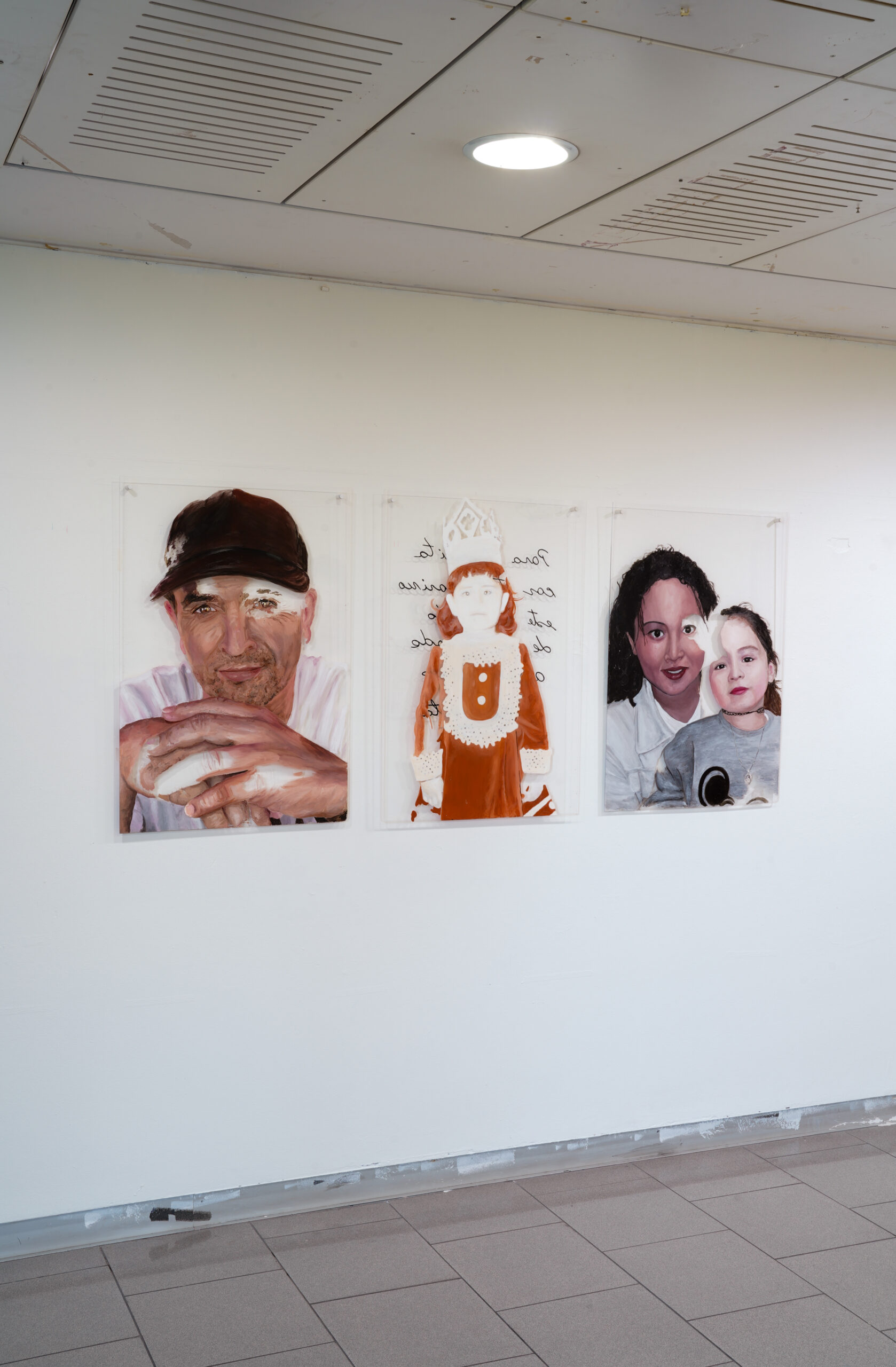 Pintura acrílica sobre placa de acrílico transparente. 93 x 63 cm cada uno.