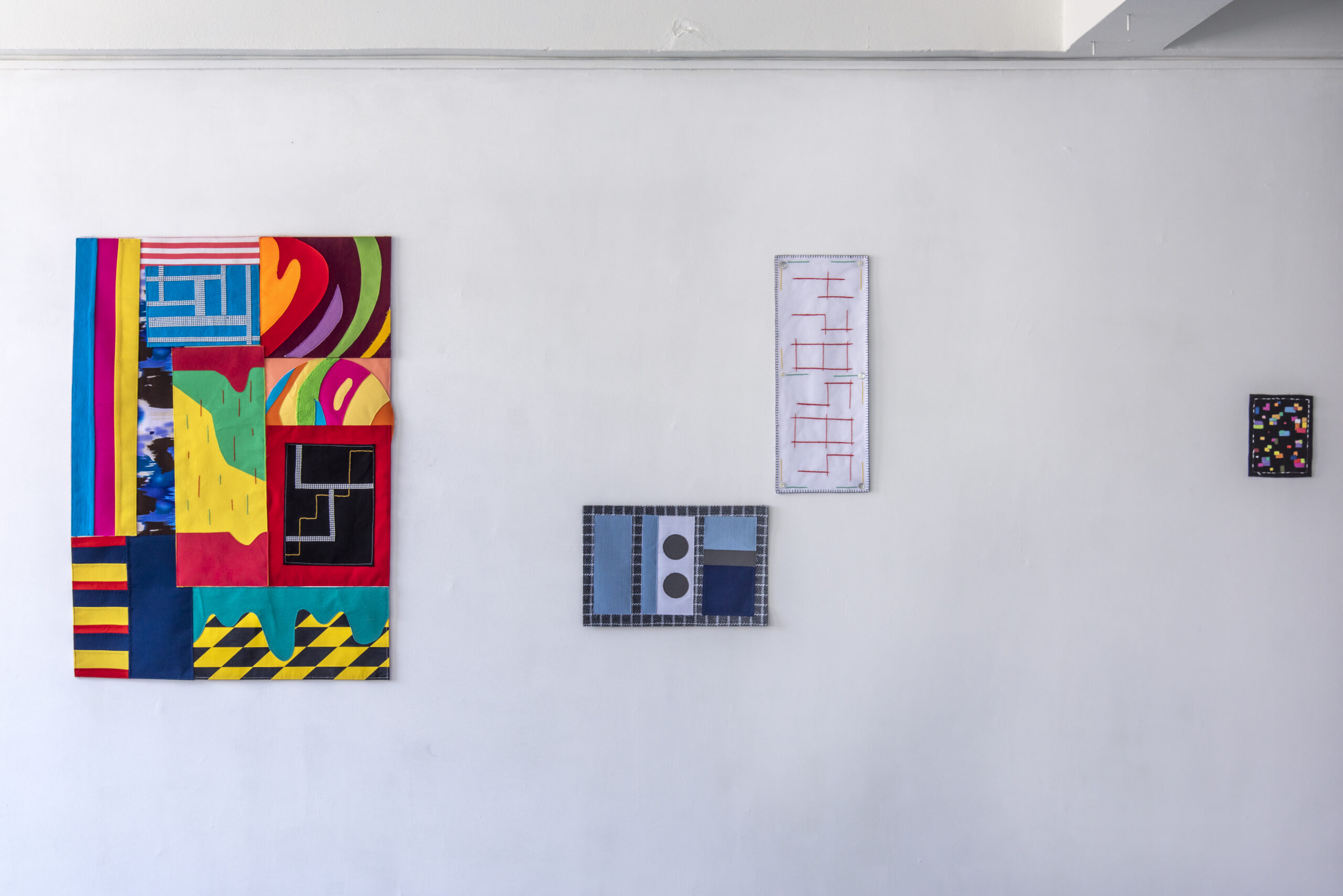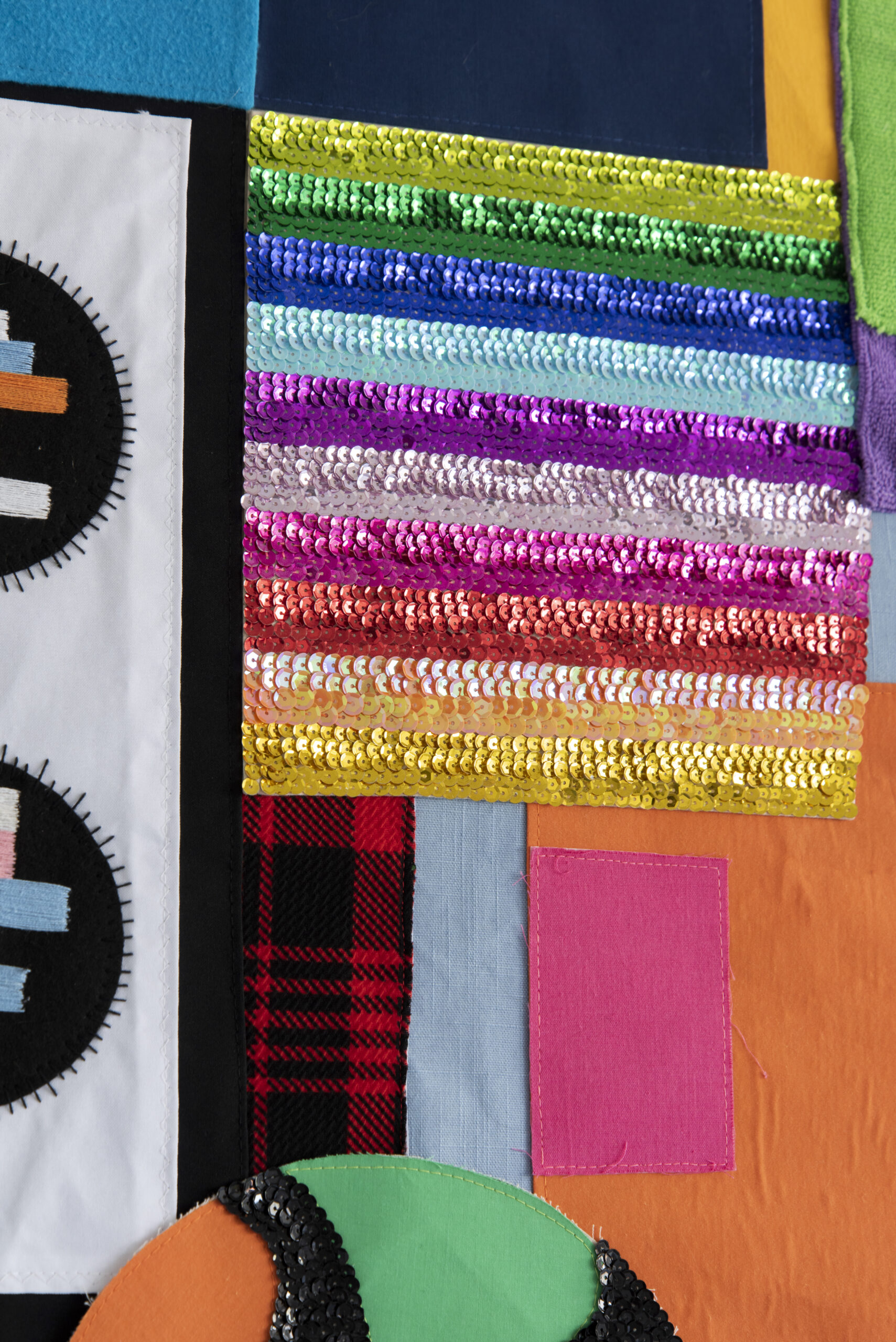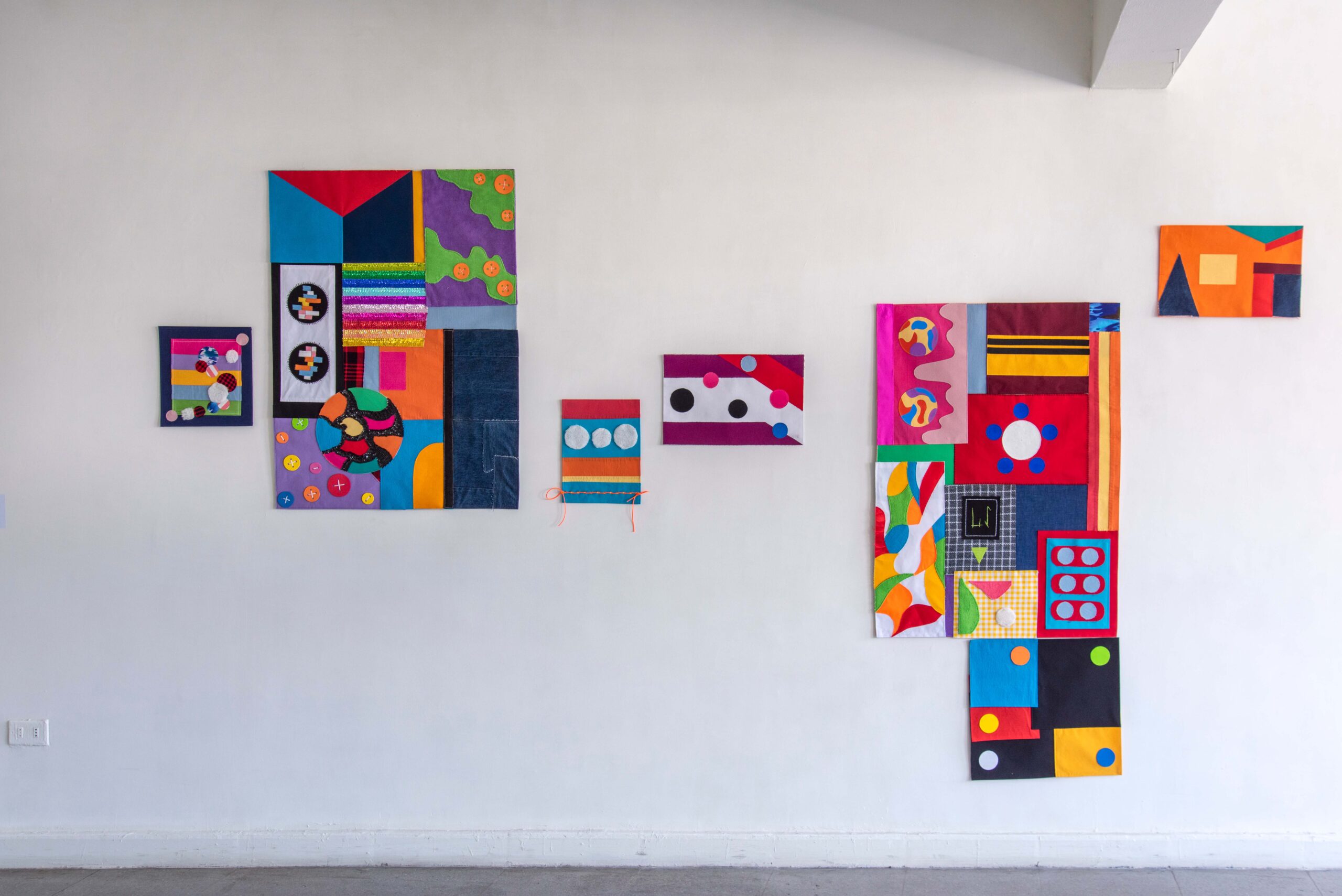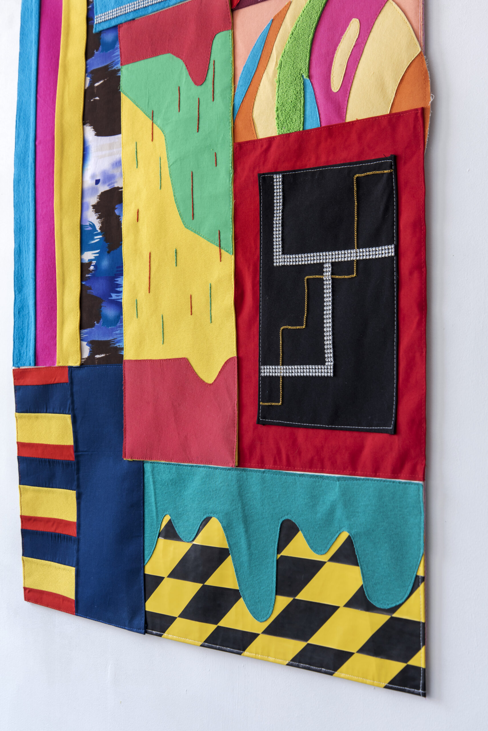 “MV” es una obra compuesta por diferentes piezas hechas por retazos de tela de diferentes tamaños, creando así composiciones de collage o siendo obras únicas. Las piezas están formadas por imágenes o elementos que fueron extraídos de videos musicales de KPop.