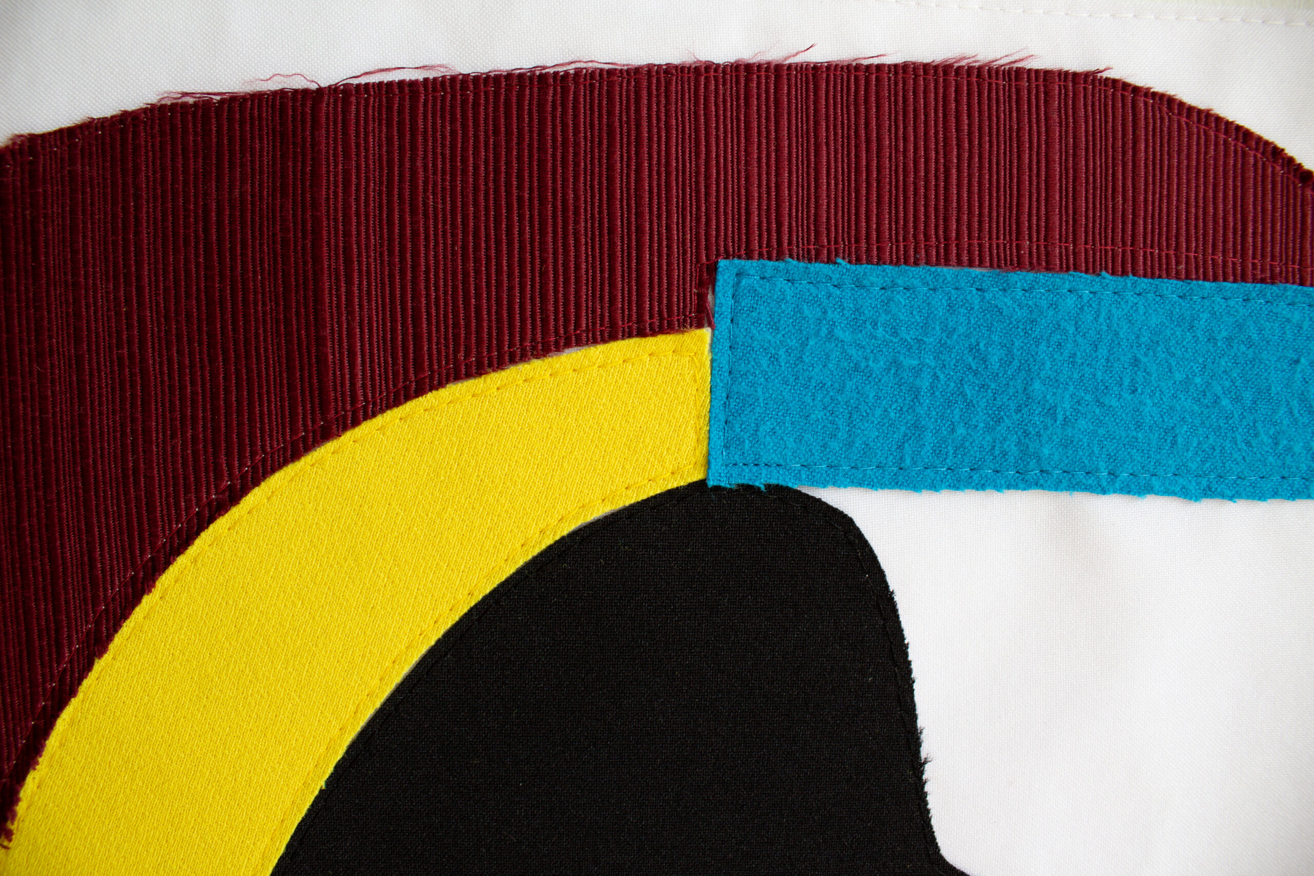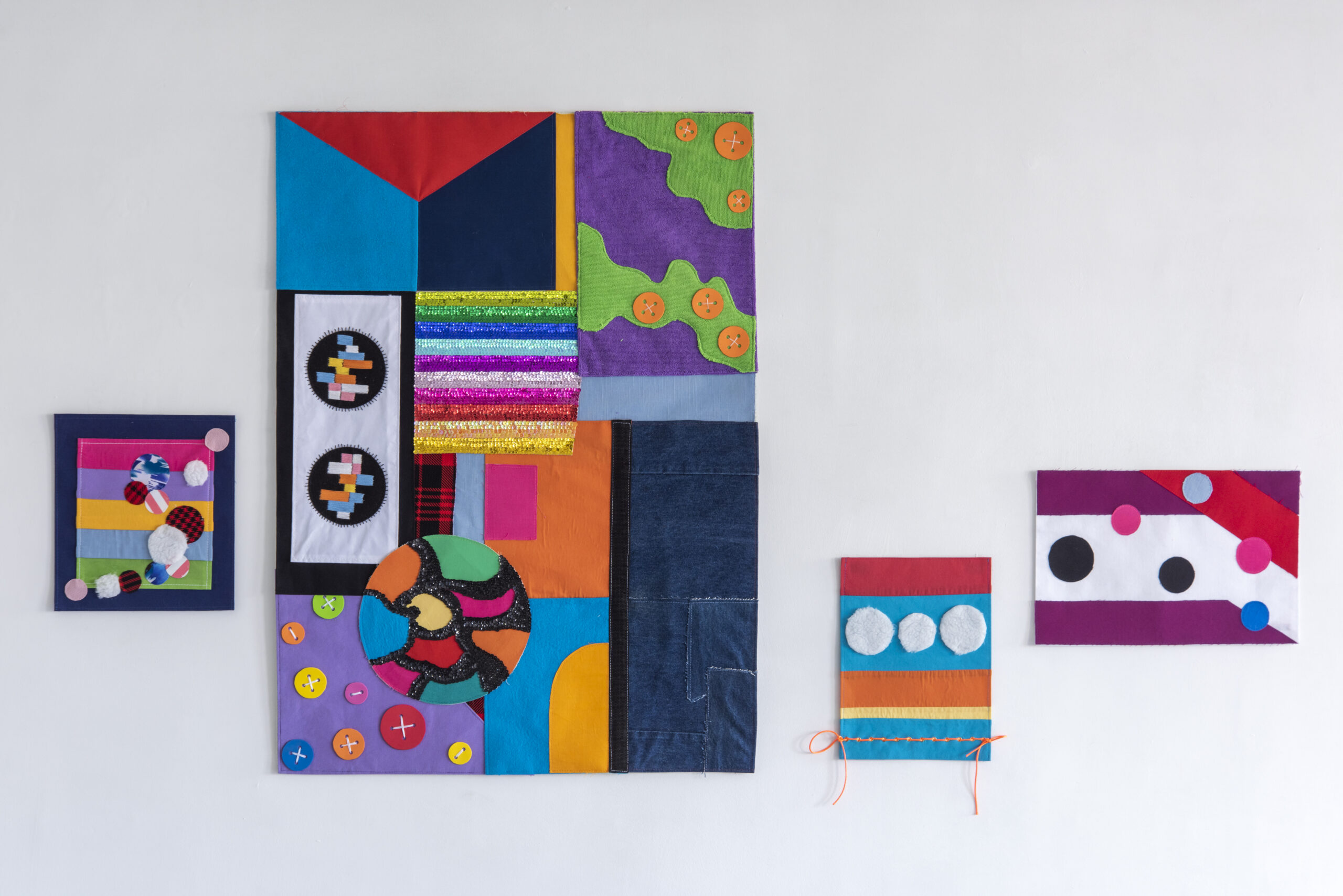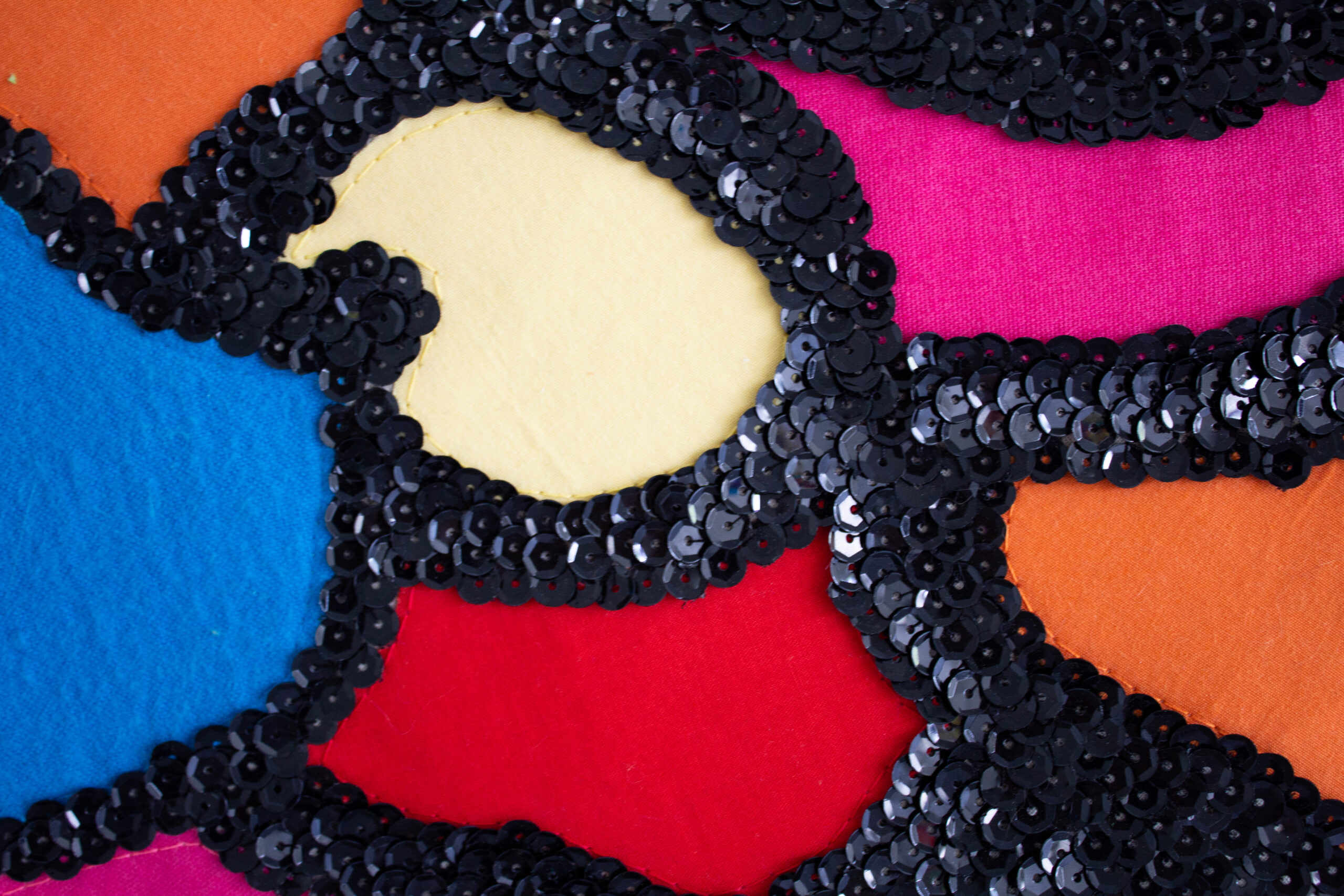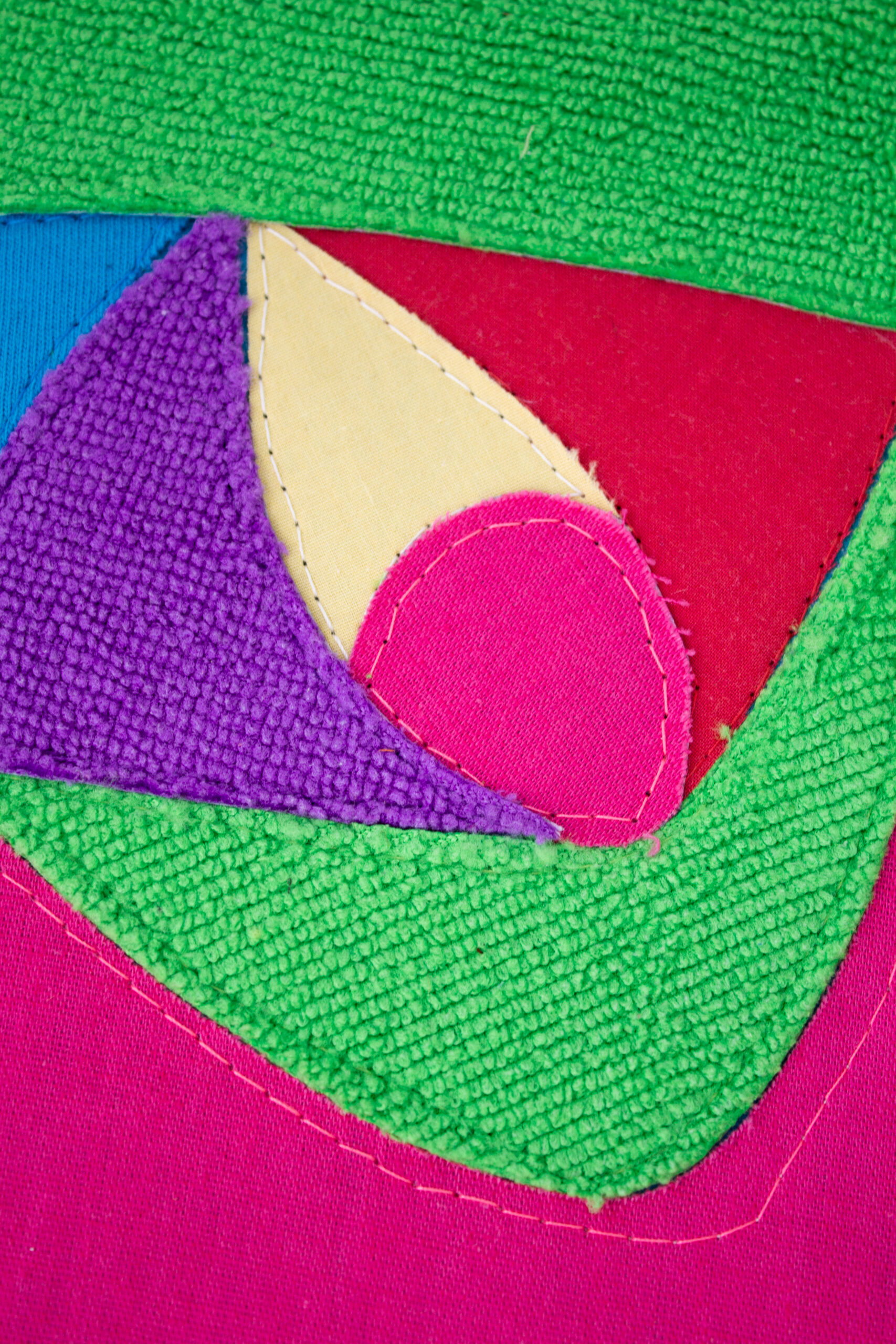 “MV” es una obra compuesta por diferentes piezas hechas por retazos de tela de diferentes tamaños, creando así composiciones de collage o siendo obras únicas. Las piezas están formadas por imágenes o elementos que fueron extraídos de videos musicales de KPop.