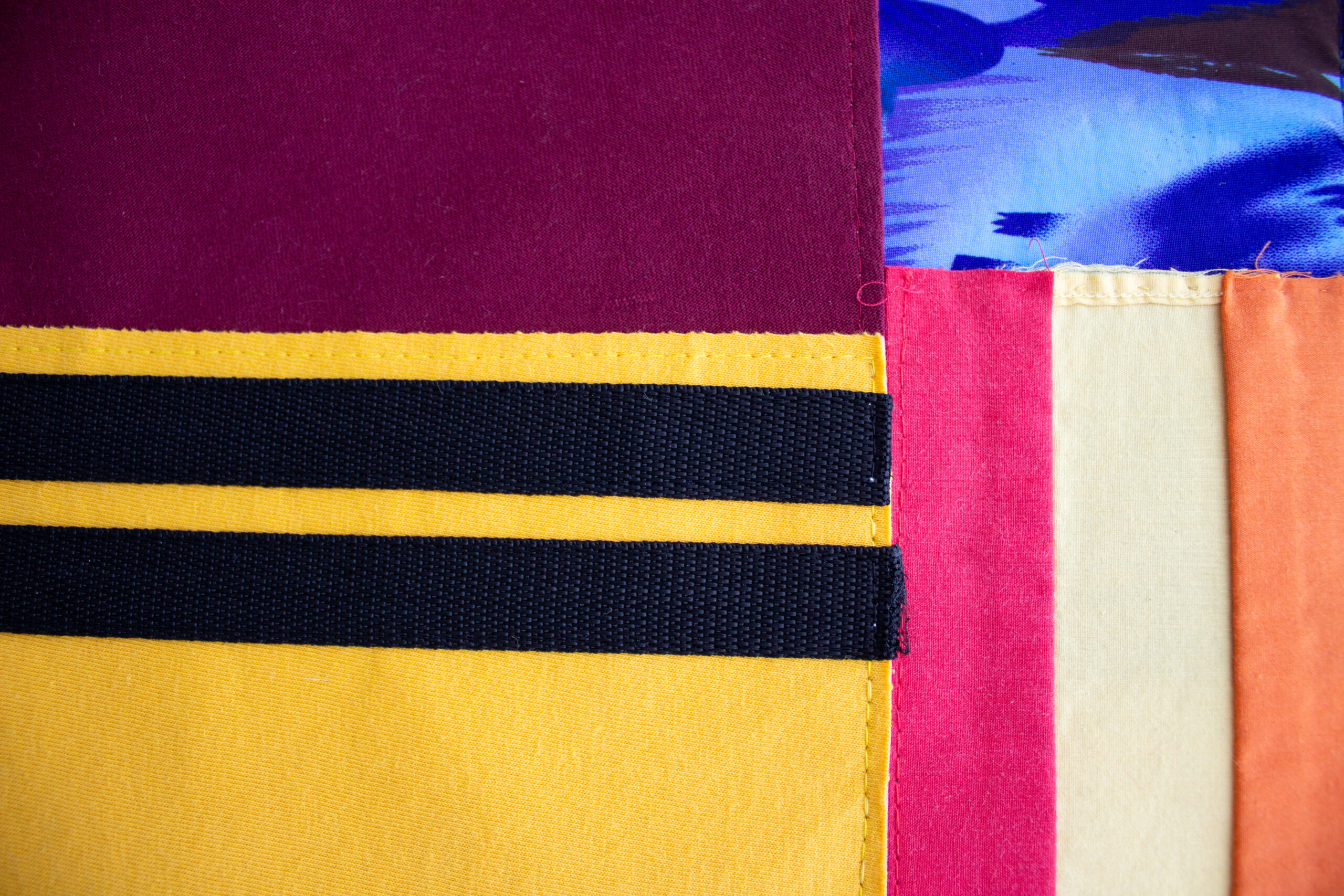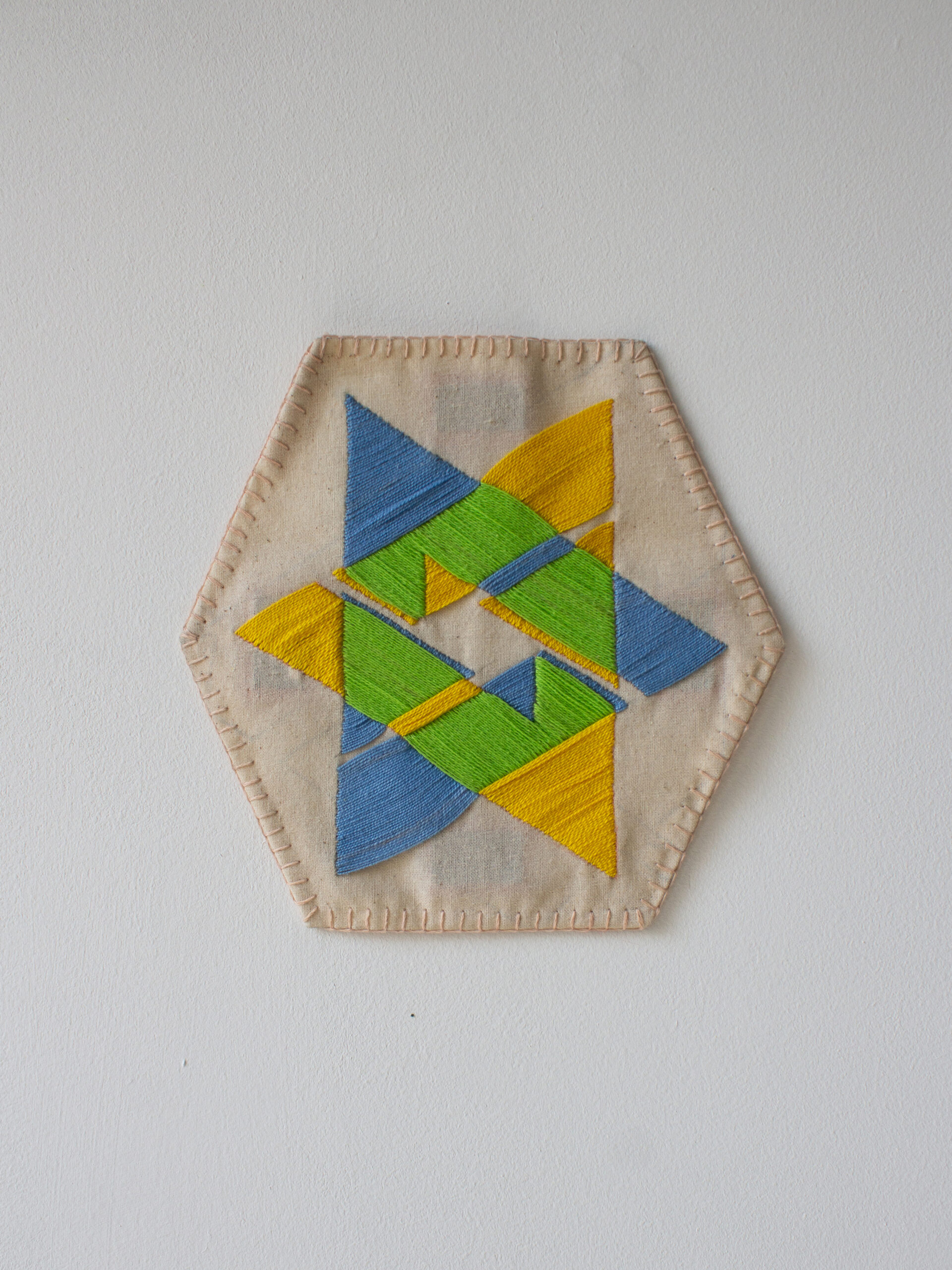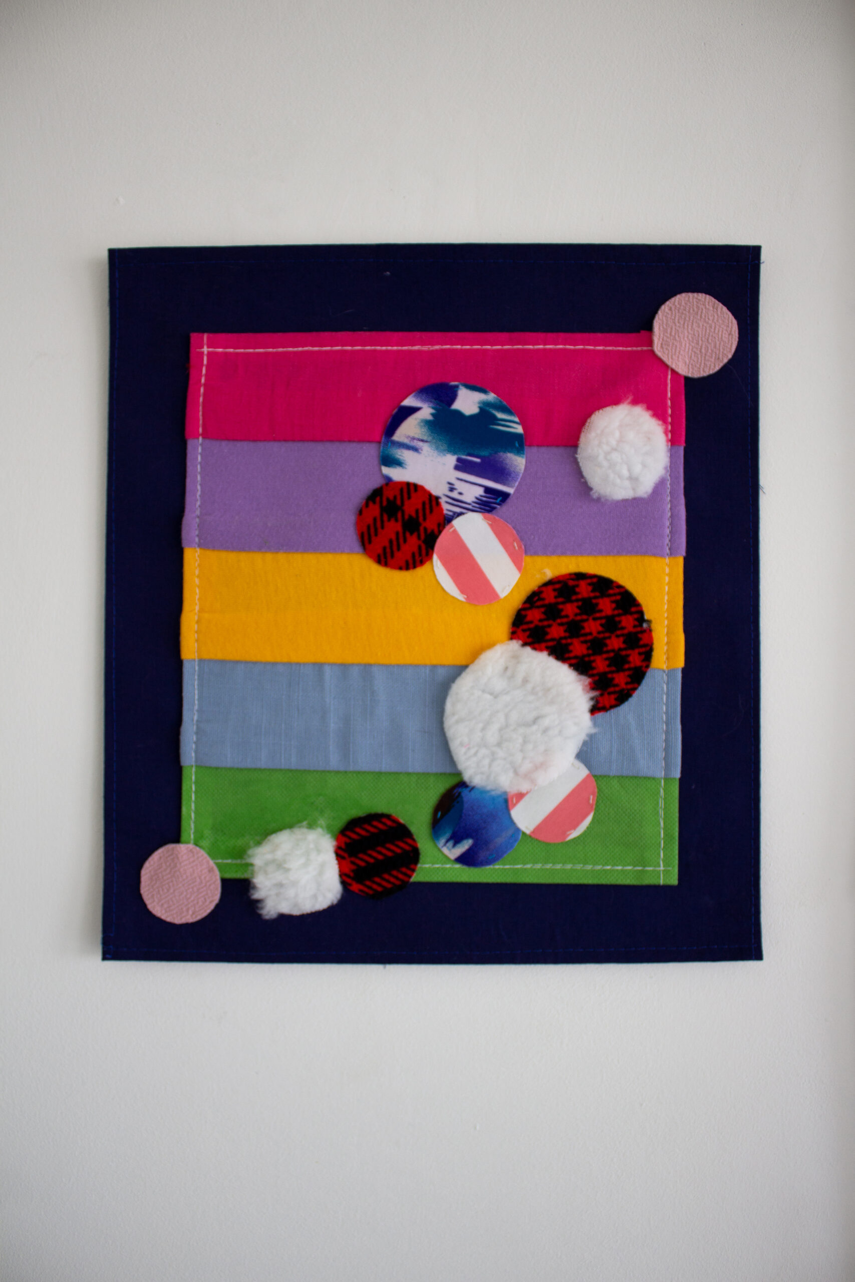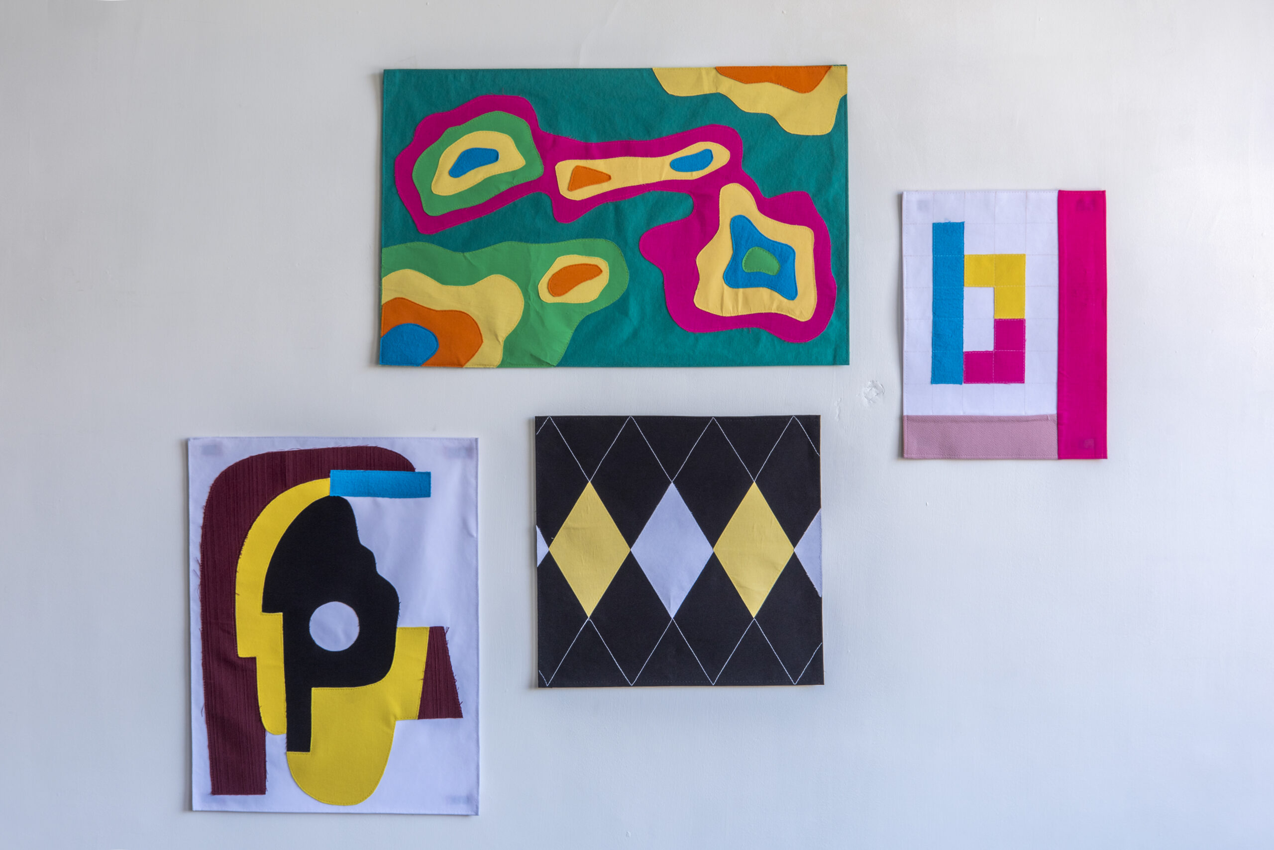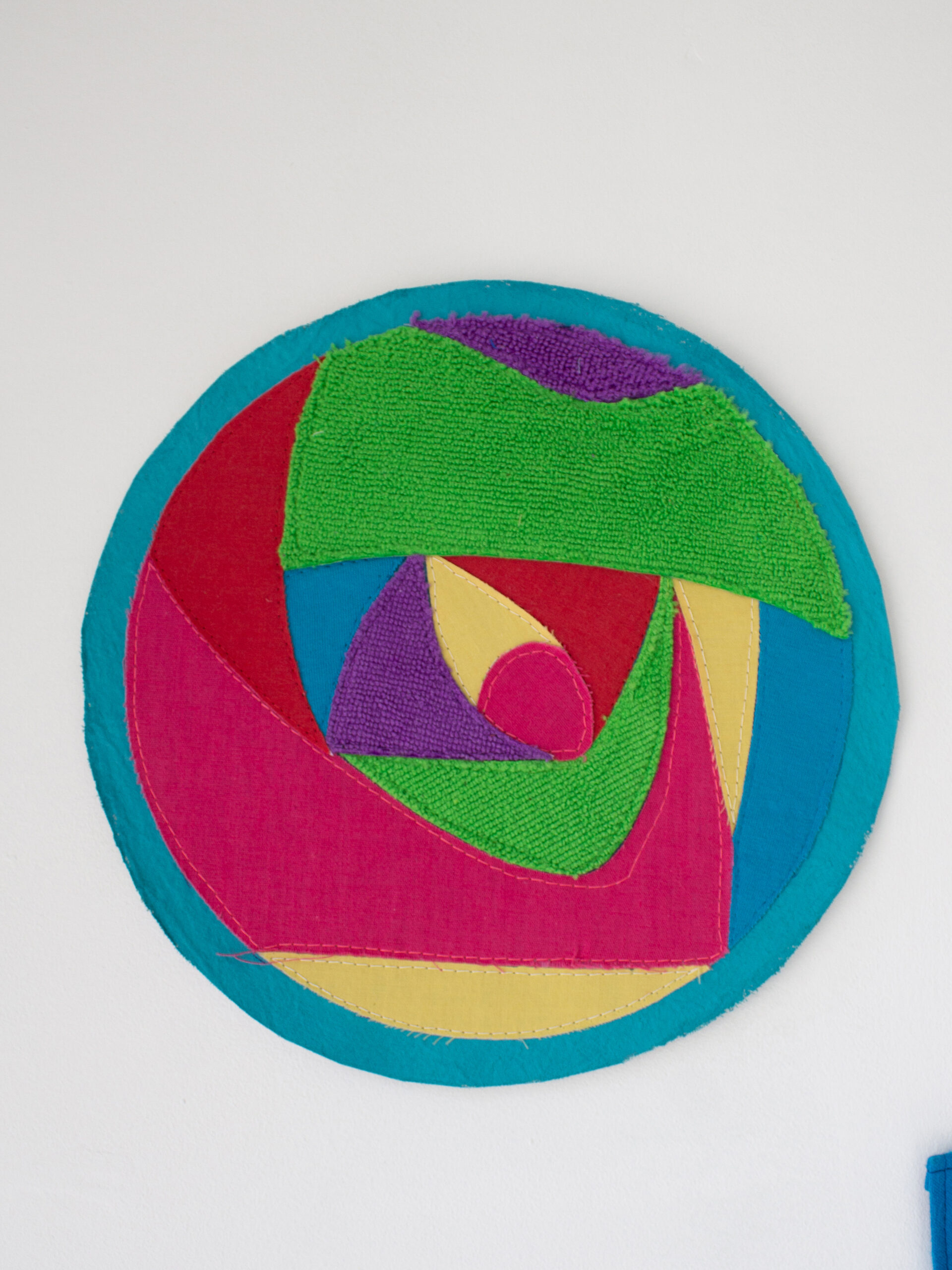 “MV” es una obra compuesta por diferentes piezas hechas por retazos de tela de diferentes tamaños, creando así composiciones de collage o siendo obras únicas. Las piezas están formadas por imágenes o elementos que fueron extraídos de videos musicales de KPop.