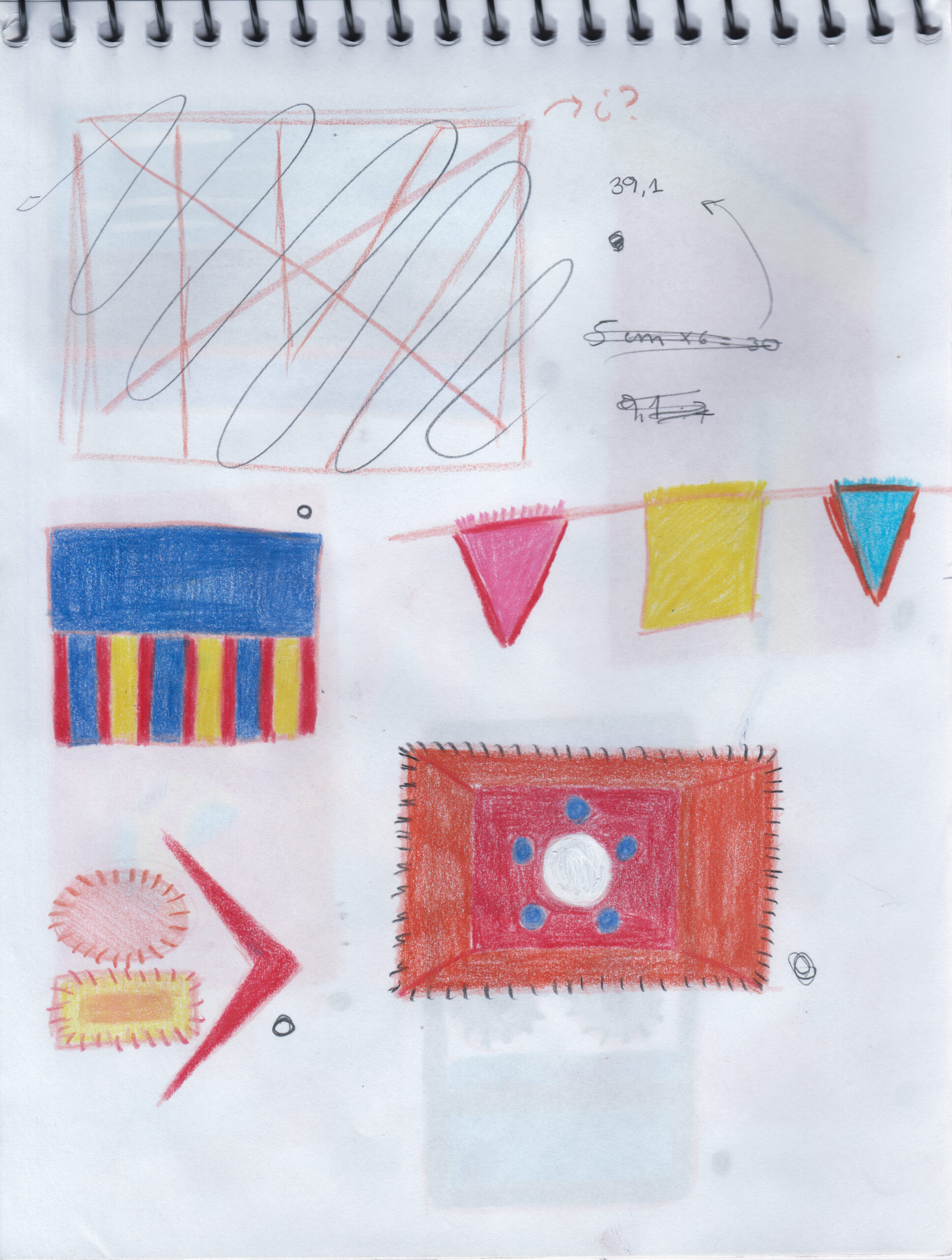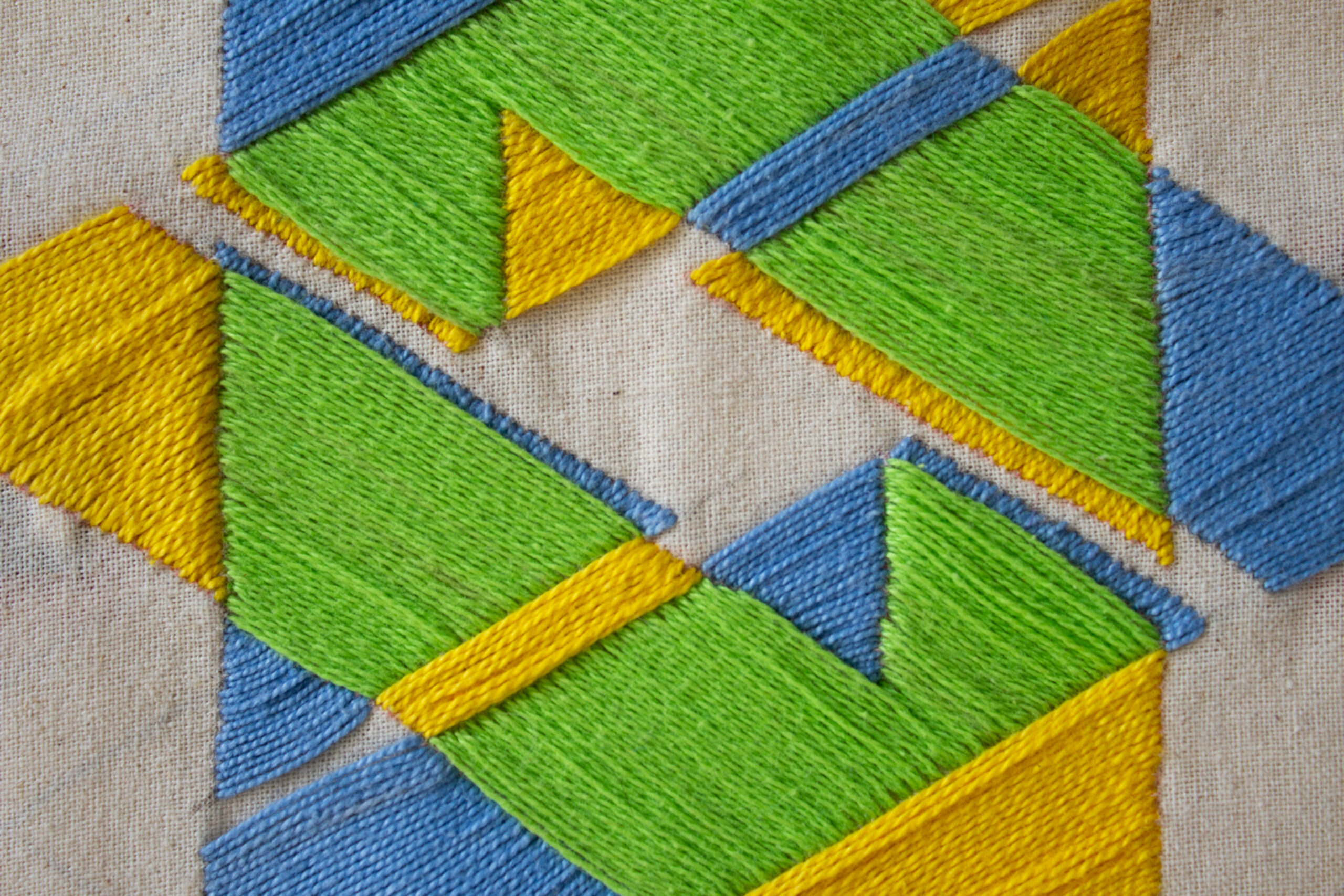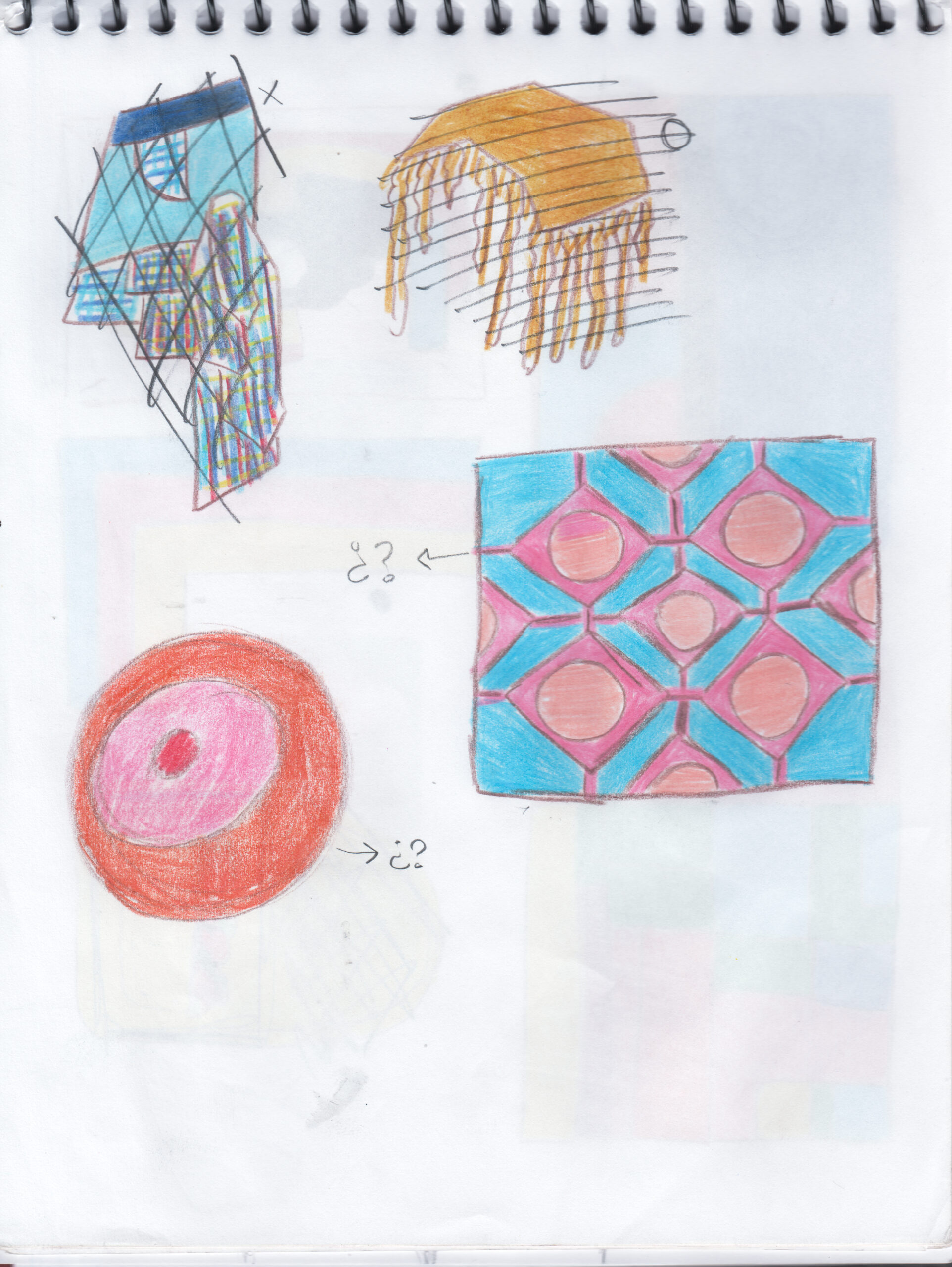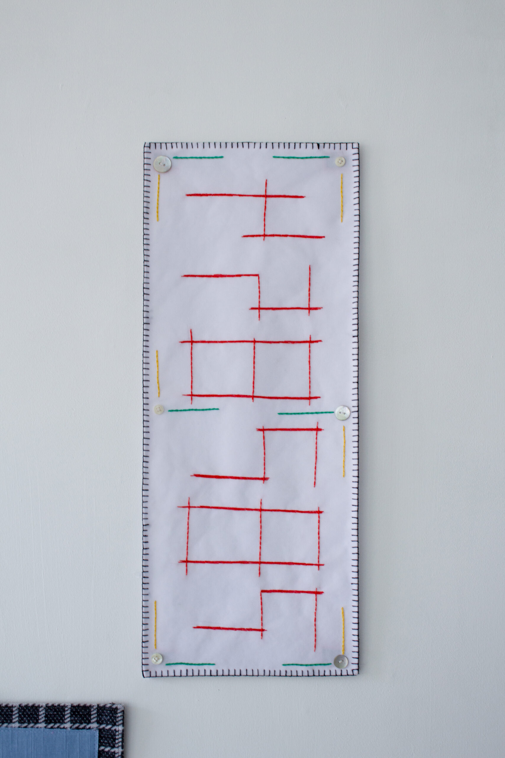 “MV” es una obra compuesta por diferentes piezas hechas por retazos de tela de diferentes tamaños, creando así composiciones de collage o siendo obras únicas. Las piezas están formadas por imágenes o elementos que fueron extraídos de videos musicales de KPop.