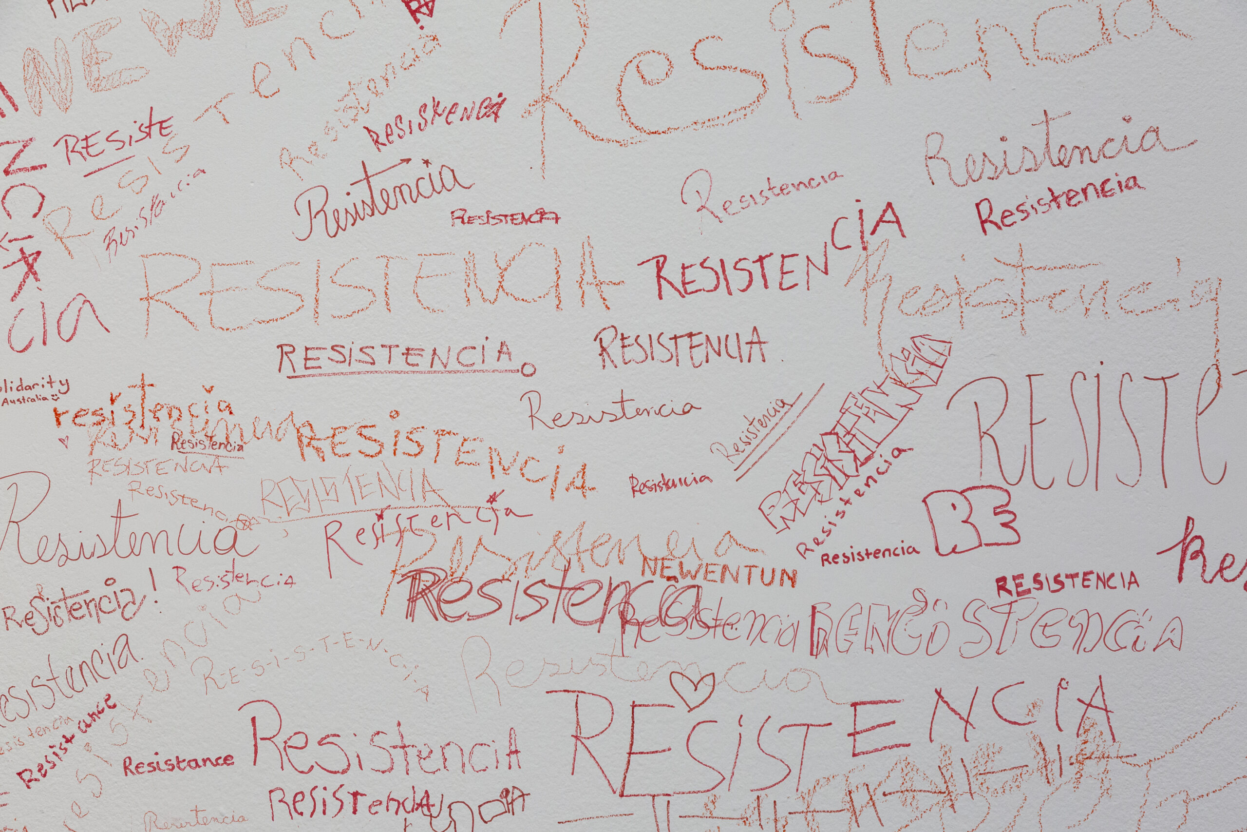 Resistir para querernos es una suerte de diagrama coral sobre los imaginarios del poder, los deseos y las luchas; es un entramado de propuestas que dialogan con los gestos manuscritos y epistolares de artistas a partir de la gráfica, que ha tenido en los últimos 50 años un papel ineludible en la construcción de contra-narrativas basadas en gestos y acciones solidarias.