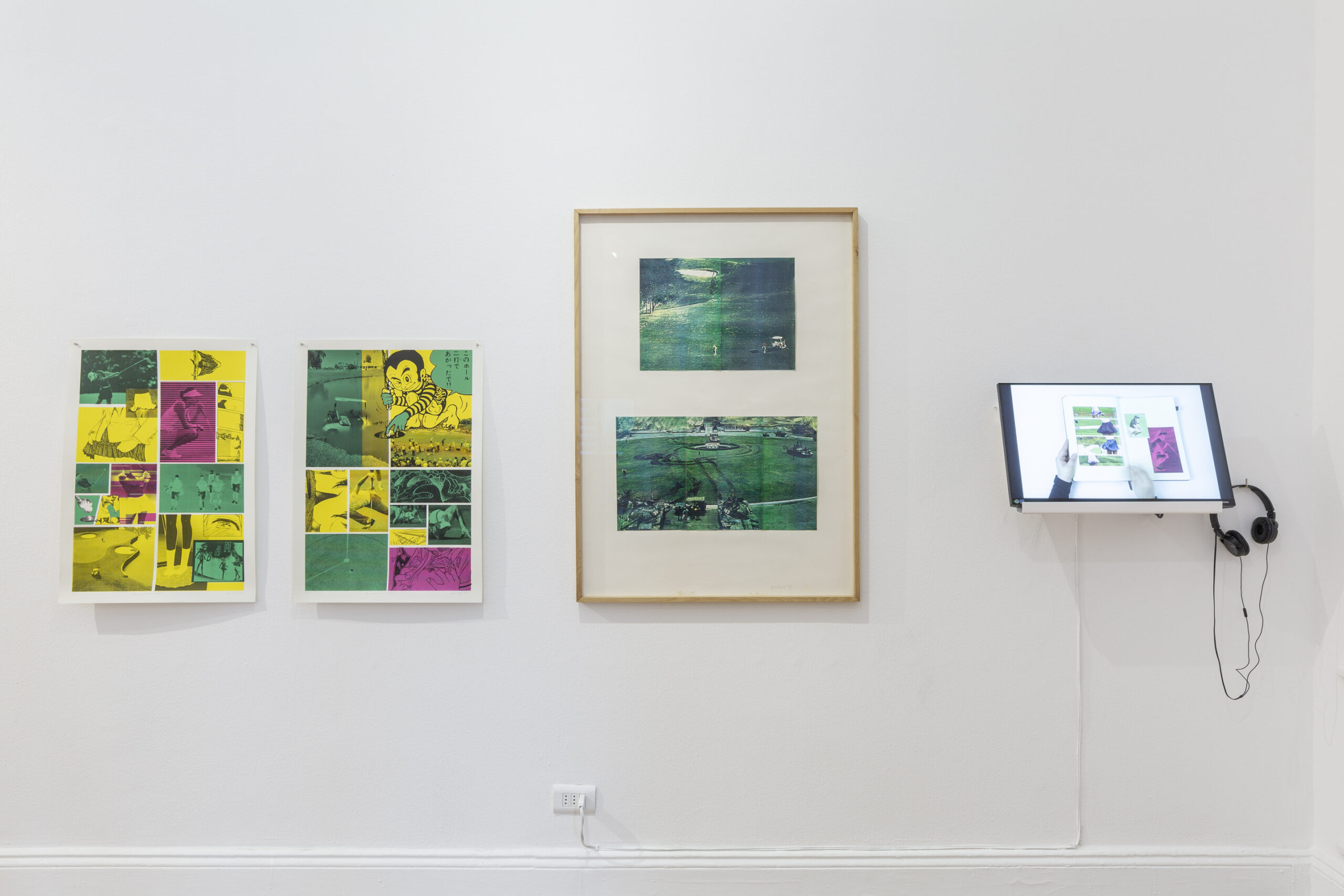 “Si la historia se centra en la descripción del pasado, en la memoria prevalece la construcción de sentido presente. La memoria trabaja con testimonios; la postmemoria, con archivos” (Fontcuberta, 2024). Desde ese lugar de enunciación es que este diagrama puede leerse en la concatenación de formas y signos visuales, que desde diversos desplazamientos del grabado nos revelan mecanismos de poder subyacentes en las narrativas oficiales, como el puño alzado de la libertad en oposición al puño autoritario de Diego Portales, o en el triunfo del rojo y la belleza de la utopía socialdemócrata sobre el azul. Así también, en signos populares como el deporte o la prensa amarillista, que encandilan con sus pastos verdes y sucesos religiosos para esconder la violencia. A la vez surgen aquí manchas, grafías, retratos como vestigios de lo humano; la humanidad del tacto y la densidad del tiempo de una imagen, como formas que reparan en pequeños gestos cargados de afección que, a través del arte, sostienen la idea del bien común.